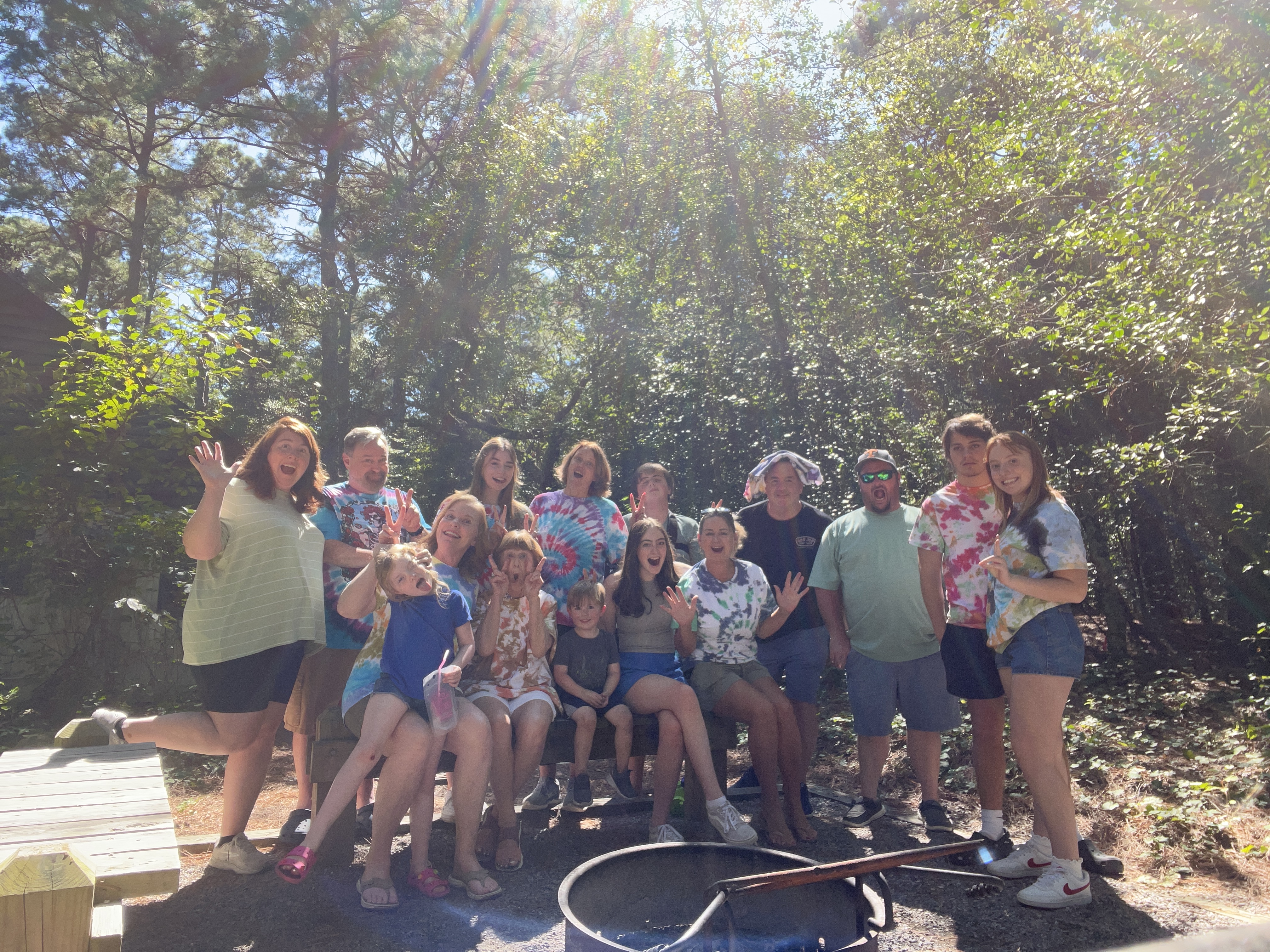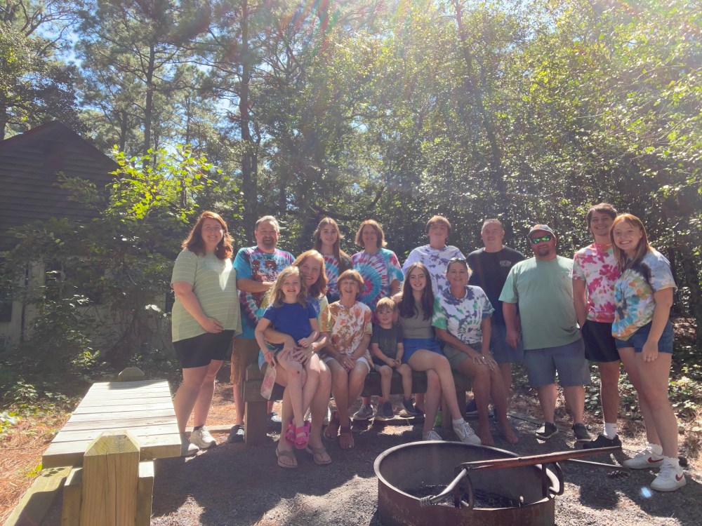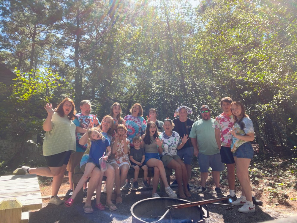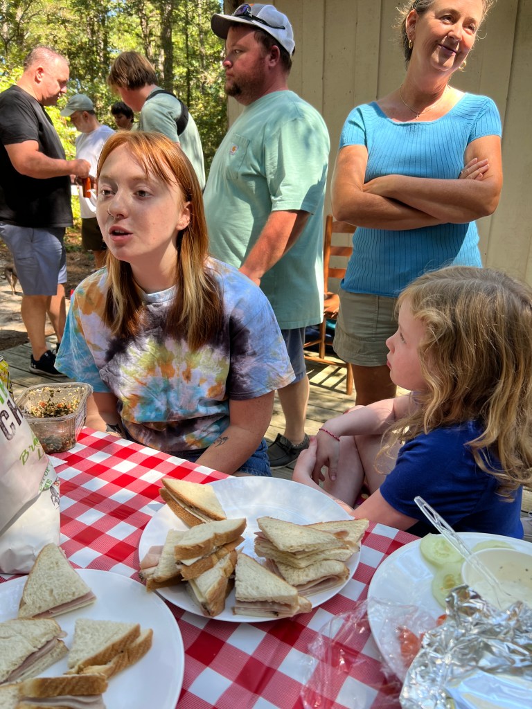 We had lunch as a family around noon at Parish and Anna’s cabin. John Hebb made a fantastic pork roast, and families brought their picnic items to share. We always have leftovers! This year, we brought Tie Dyes for the pictures.