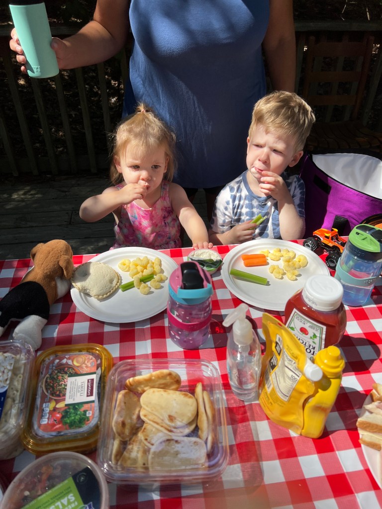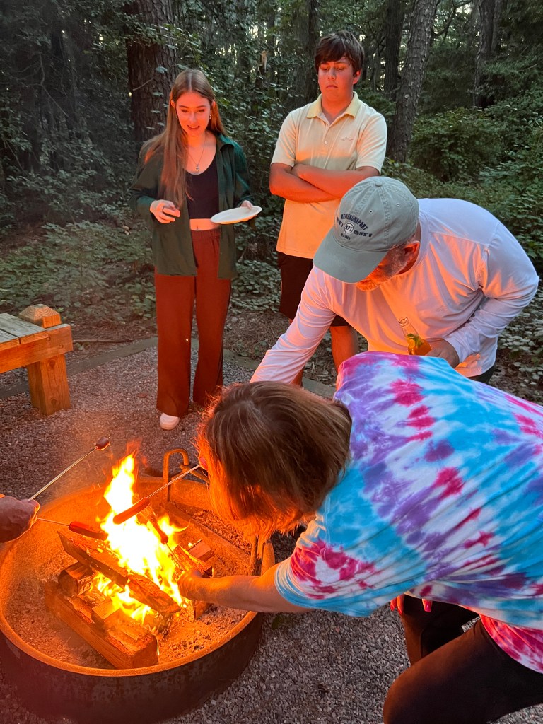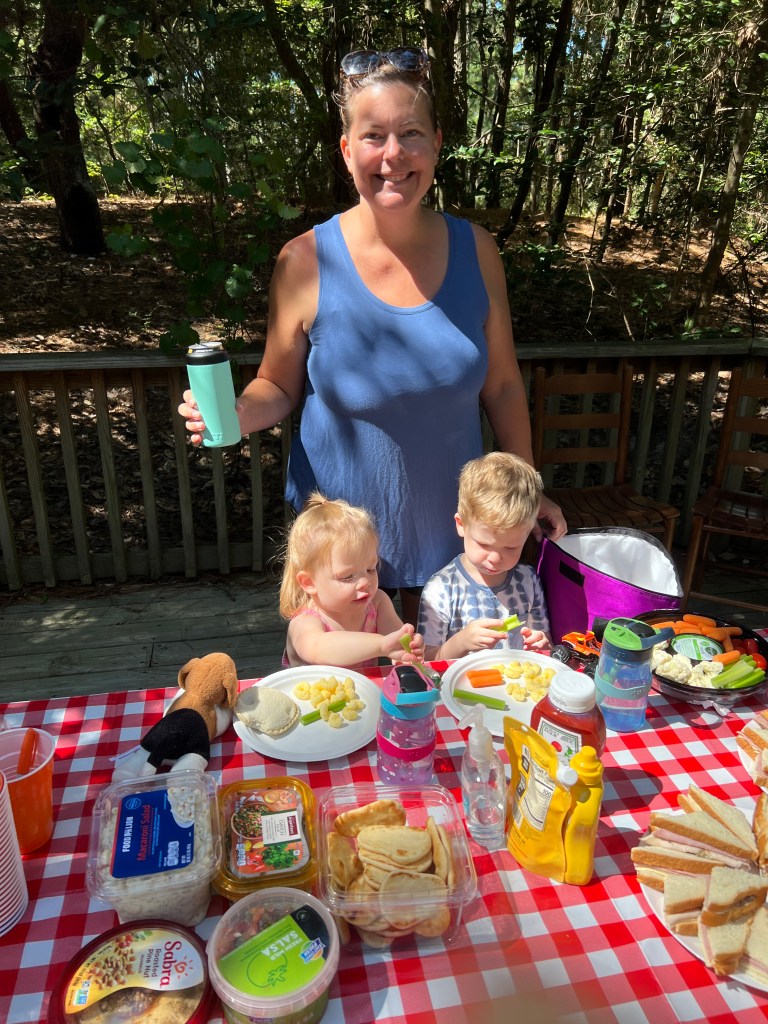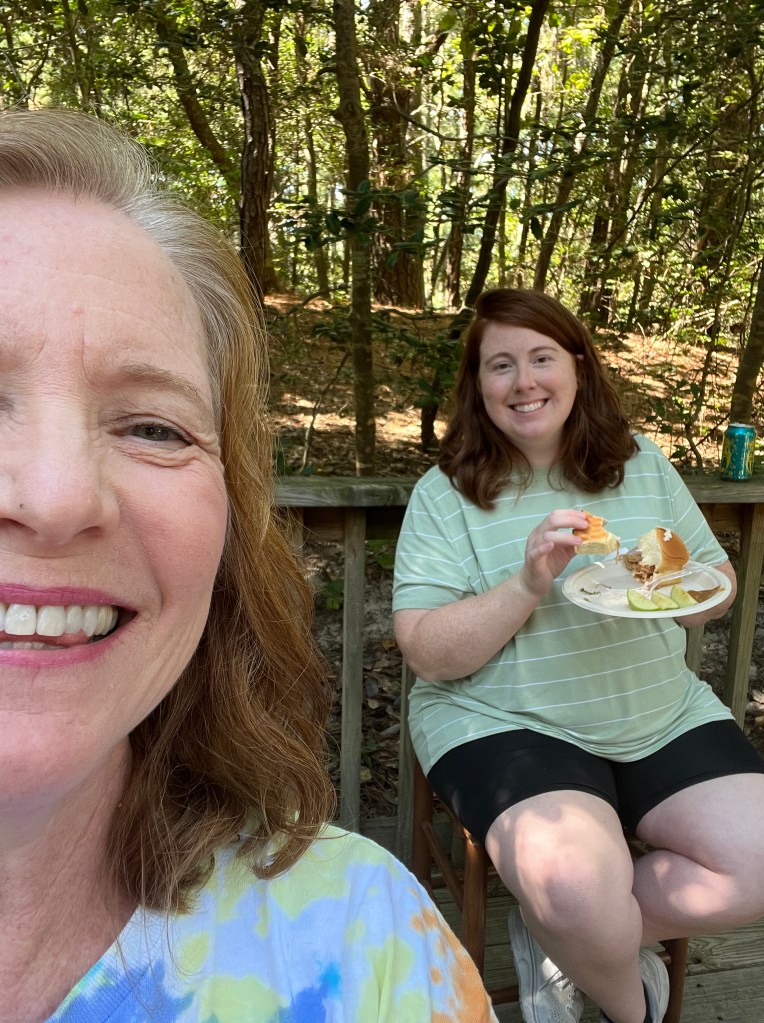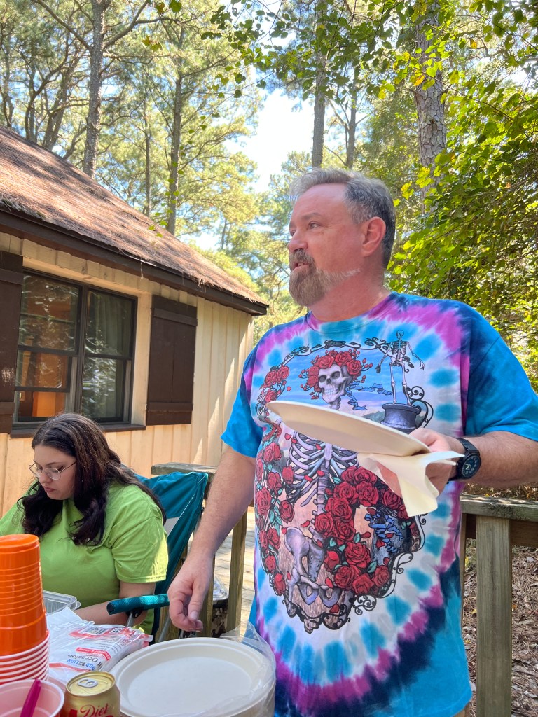 We had lunch as a family around noon at Parish and Anna’s cabin. John Hebb made a fantastic pork roast, and families brought their picnic items to share. We always have leftovers! This year, we brought Tie Dyes for the pictures.