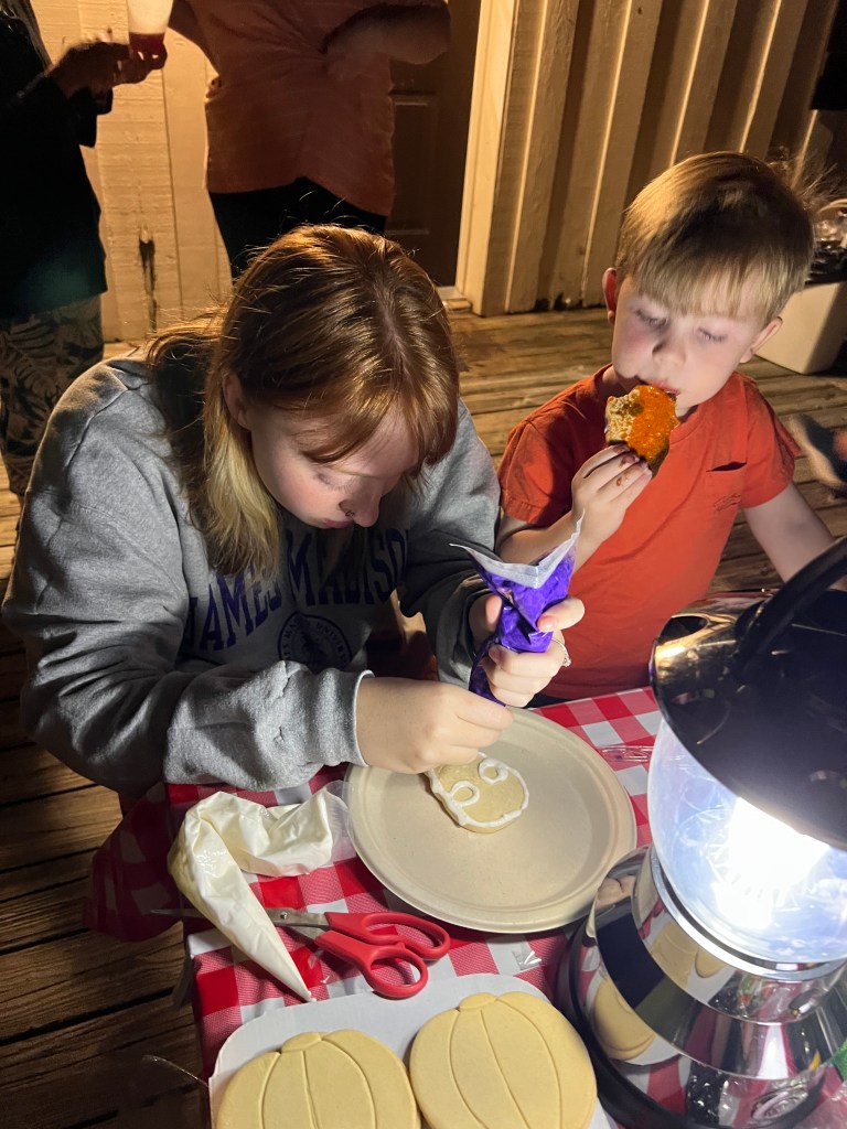 Dinner was our usual hot dogs on the grill, leftovers, Smores, and Spencer’s famous Fall hot toddy. I also made the Mexican Bean Dip with Cream Cheese. We had baked beans, and Linda brought cookie decorating for the children. We celebrated Jax’s baptism with a cake and sang to him. What a great decision of faith, Jax.