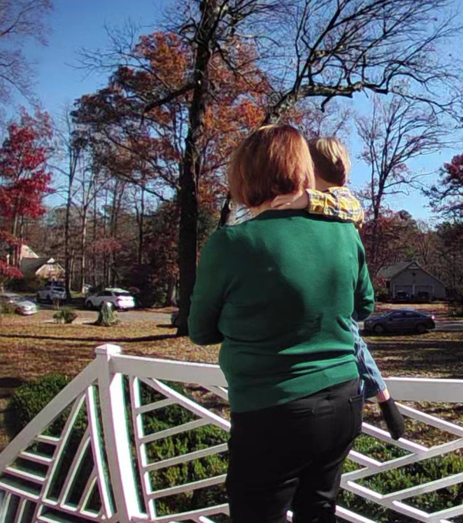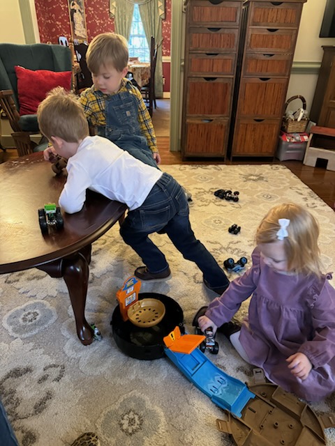 Seeing the family sit in the breezeway room after Spencer, Jr. took a pretty bad fall throwing a fake snowball. Bless him. They circled around to comfort and talk.