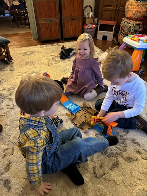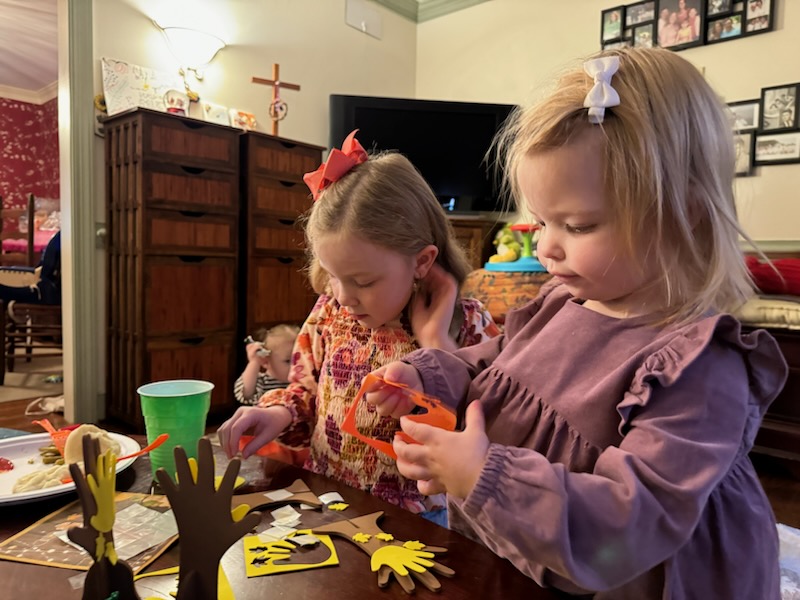 It was lovely to have everyone over, and the food was delicious this year! We made “thankful trees” and a Christmas gingerbread house, and because the weather was exquisite, the older and younger children played games outside!