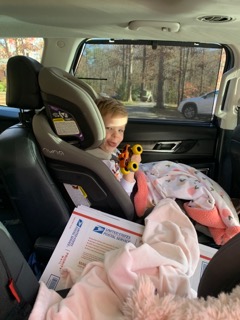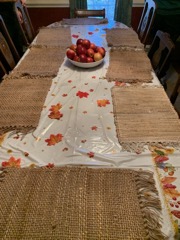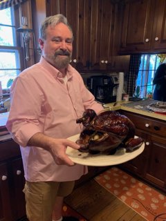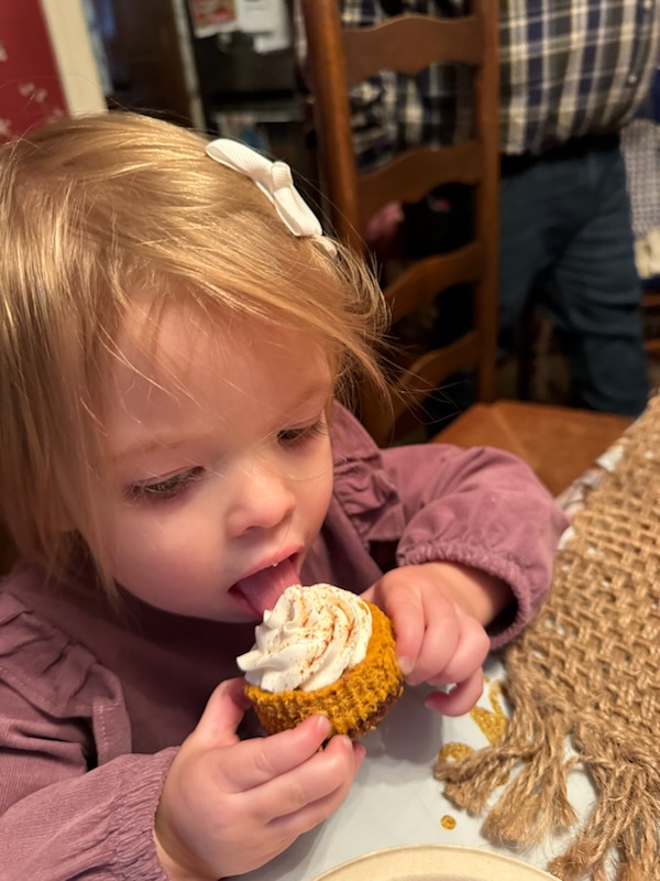 We had Thanksgiving lunch earlier this year. We served lunch at 11:00. Parish, and I did a lot of prep work starting on Tuesday, and he got up at 5:00 a.m. on Thursday to get Turkey on the grill. Valentina helped with sweet potatoes and tried out her small bundt cake pan for a chocolate cake.
