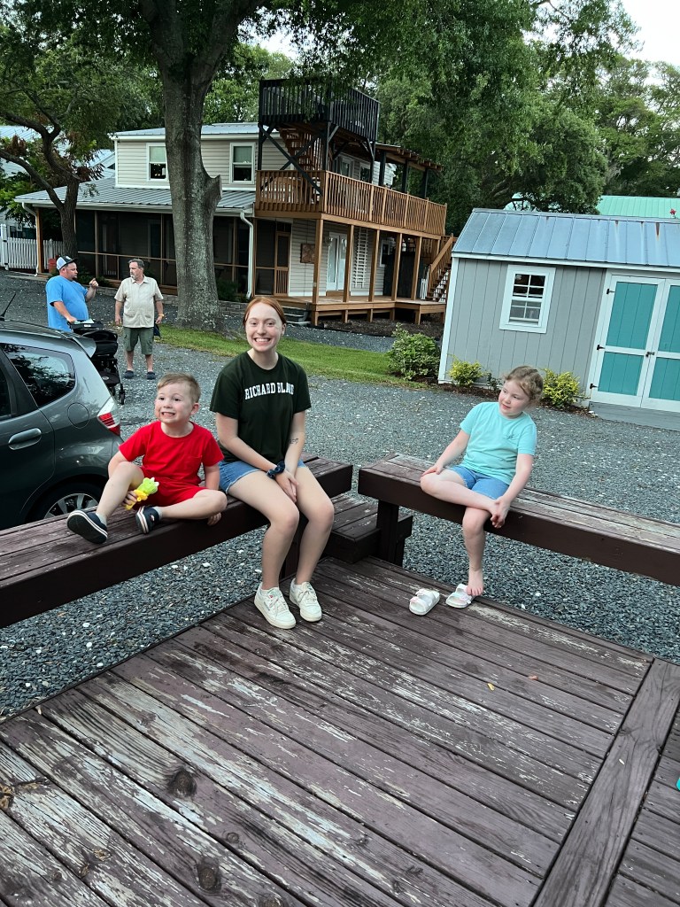This week of June 29 – July 6, we are in Oak Island (The Lambs) and Southport, NC (Parish, Anna, and Valentina). I’ve decided to share our memories through one word each day. The first night together brought joyful laughter as we ate pizza at the Southport house. We both set up our homes, then got together to enjoy pizza take-out from Bella Cucina. If you order through Doordash, it is quicker to pick it up yourself, so consider this vs. home delivery. We stayed at River Hideaway Retreat. A cute little house within walking distance of all things fabulous in Southport, including the water. We are missing Vivian and her family this week due to work schedules. I loved that she got Autumn to FaceTime with us.