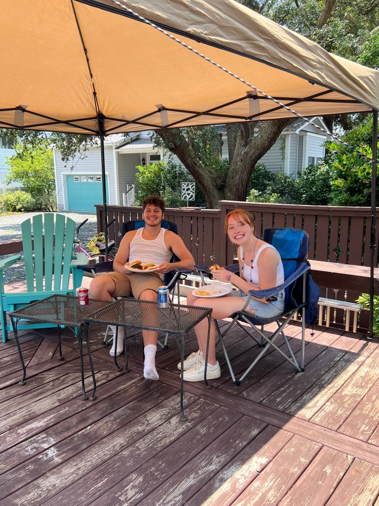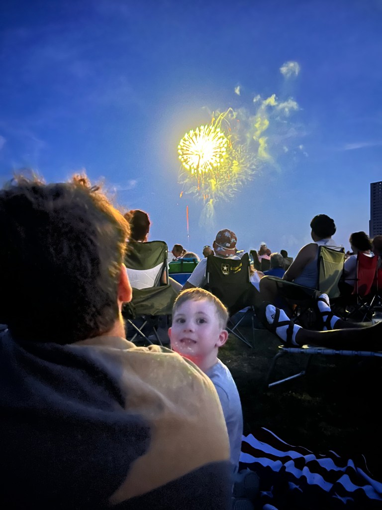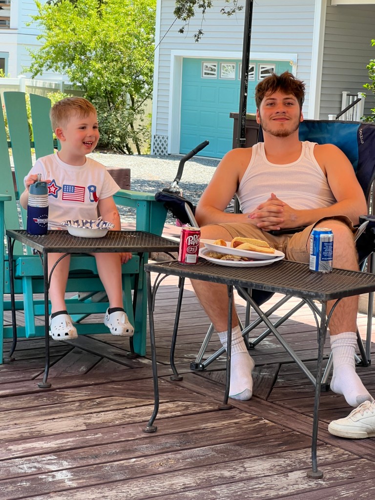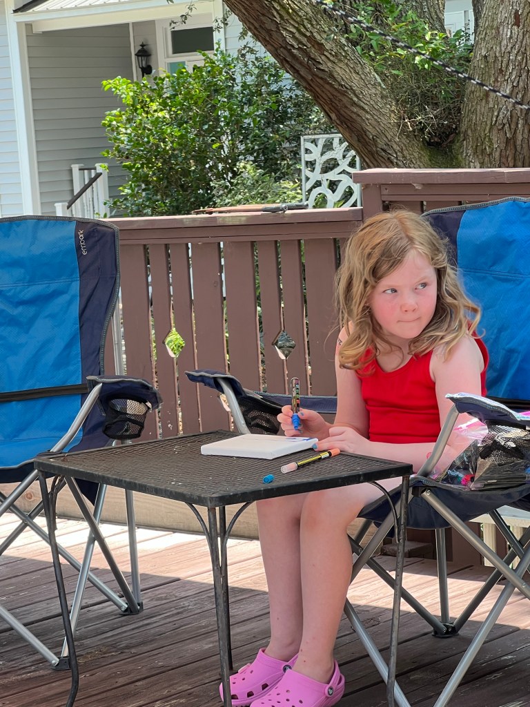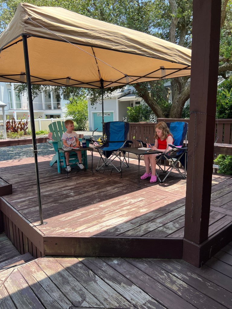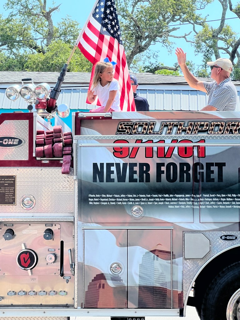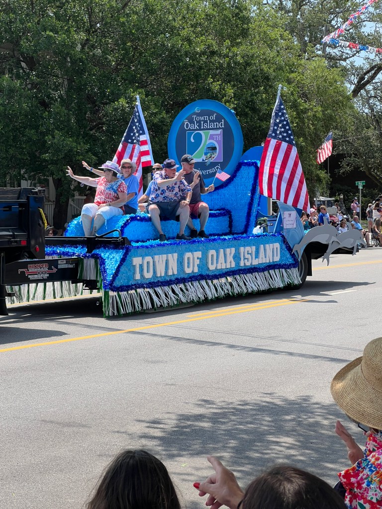 It’s July 4! Time to celebrate! The Lambs came for breakfast, and then we walked to the parade. Early that morning, Parish and I rode our bikes to check on our chairs and went to Burney’s to get some pastries. We purchased chocolate milk for Spender, Jr. -his favorite. The Haven outdid themselves with a fan, mist, and bubbles for the children. The kids loved the parade and all the goodies that folks threw from the parade, like t-shirts, rubber duckies, candy, and flags. We enjoyed gelato and drinks from The Haven. After the parade, we went back to the house and ate hamburgers and hotdogs. The kids were cute, sitting in their cozy spots in the house, working on crafts and admiring nature. We saw some lizards. :0 ) The Lambs went walking around Southport while we cleaned and rested a bit before riding bikes again. We had dinner together and then watched the fireworks from Southport.