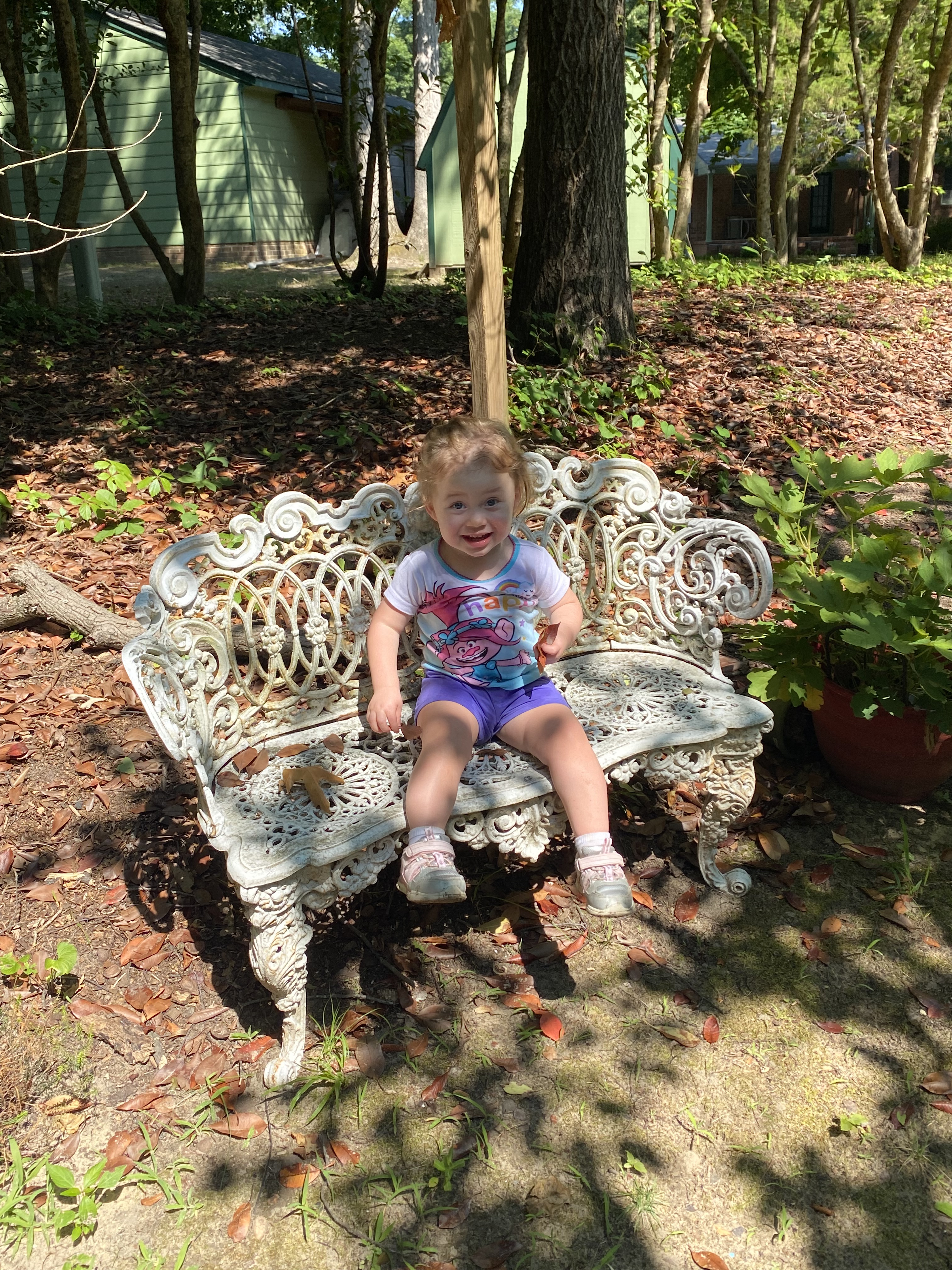Vivian sent me a picture of Autumn sitting on the bench at our house. I’m so glad they enjoyed the swing and watered our flowers.