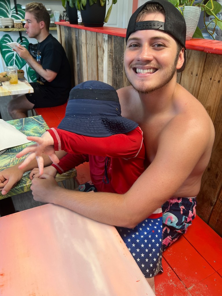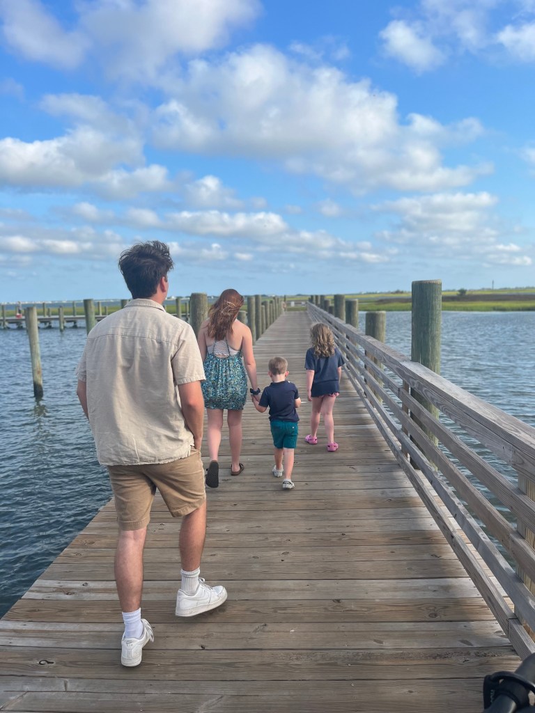It was another great day on the beach! We went to the Keziah Street lot and beach access. Today was very crowded, but we all found parking even amidst a main water line eruption! We got lunch at Ruby’s and enjoyed on the beach together. I loved seeing Parish swim the ocean like a little kid! He can ride the waves! At night, Parish and I went to see Michael Franti in Wilmington! WHAT A CONCERT!!!!!!!!!!!!!!! The venue was top-notch (Greenfield Lake). The family went to Fishy Fishy for dinner with many stories to tell! For example, fist in the eye, “Hey there lady,” blowout diaper, and finally settling into a dinner. All memories.