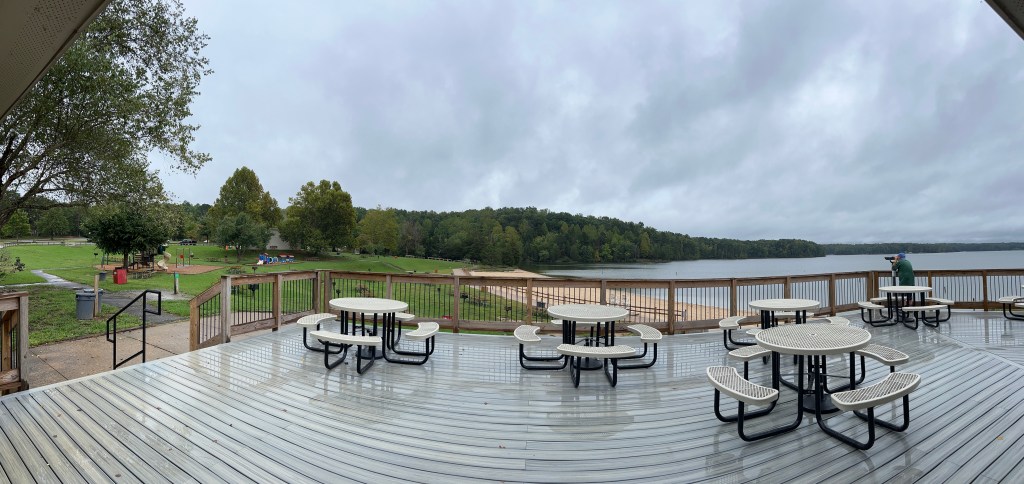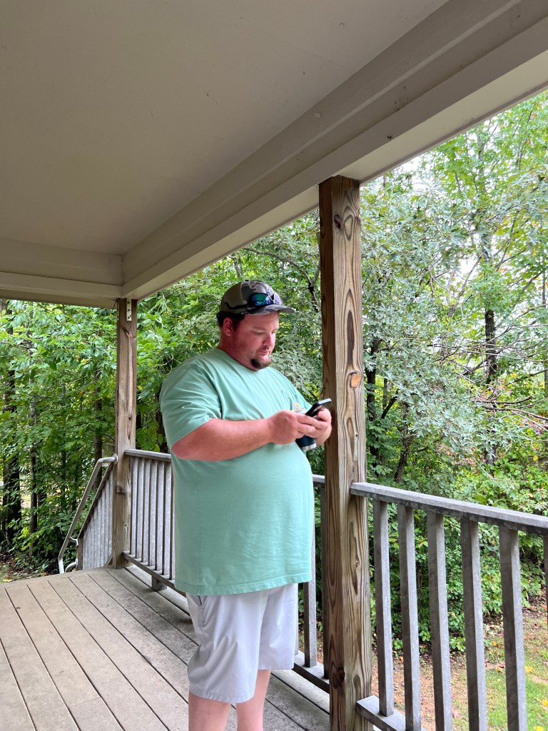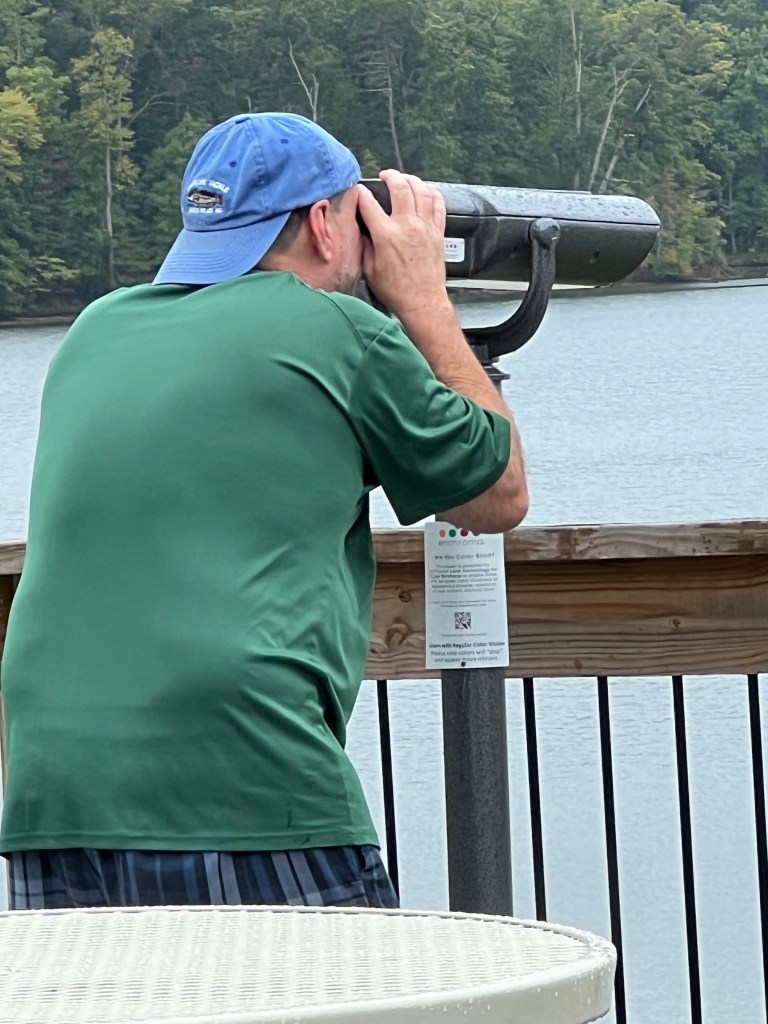 On Friday, we woke up to a beautiful morning and the sun rising over the lake. We started a fire, lit a candle, and enjoyed a yummy breakfast of eggs and bacon. The beautiful smell of breakfast, a fire, and nature was exhilarating and warm. We spent the day cooking Huli Huli Chicken. While the chicken was brining, we went to visit the visitor center, find a good Wi-Fi location for me to teach on Saturday, and look through the EnChroma View Finders.