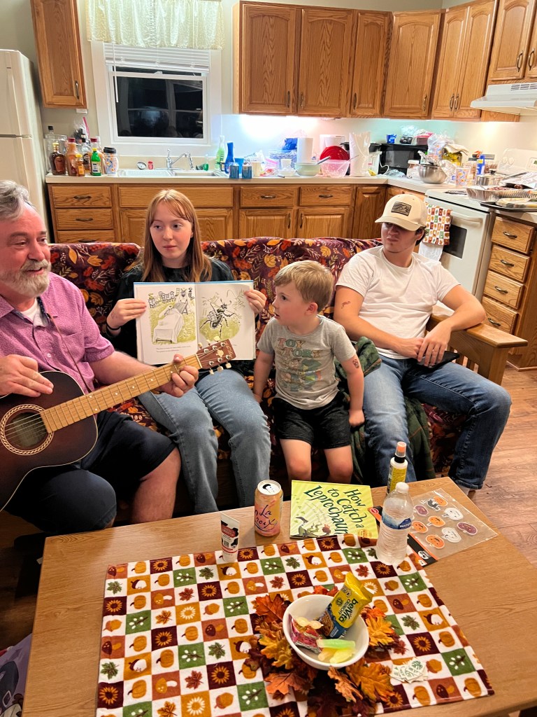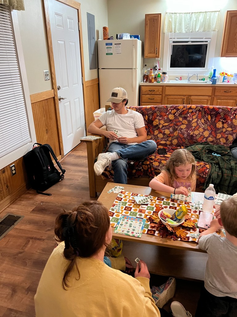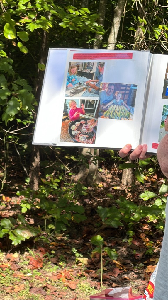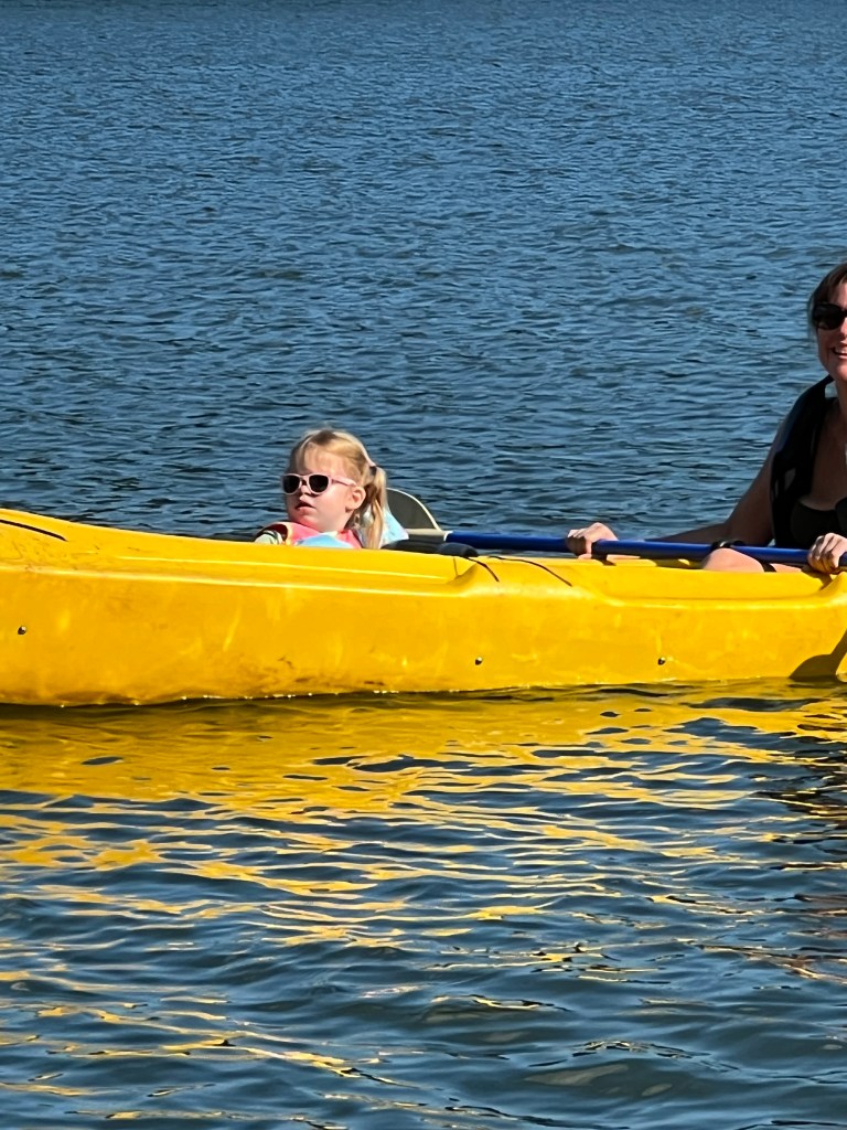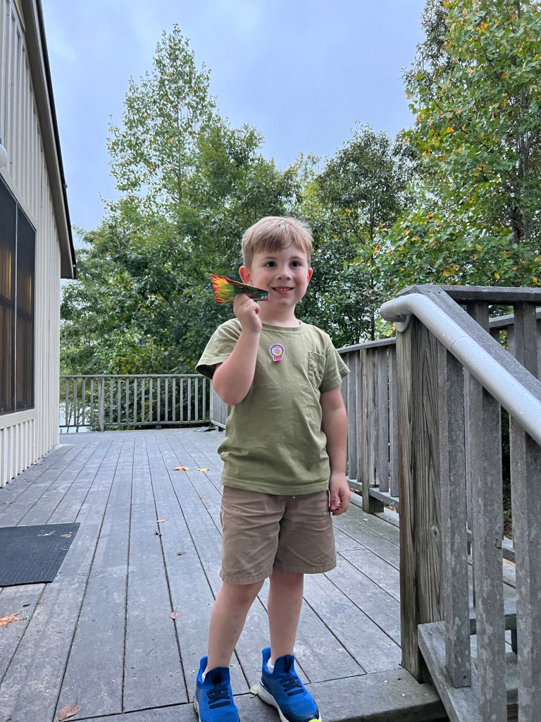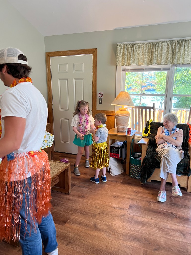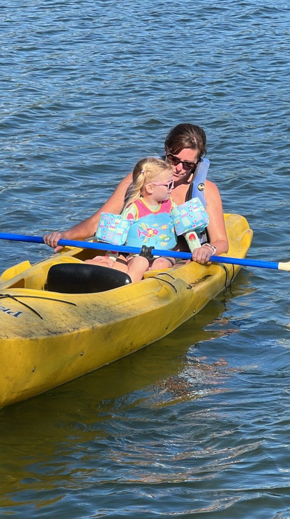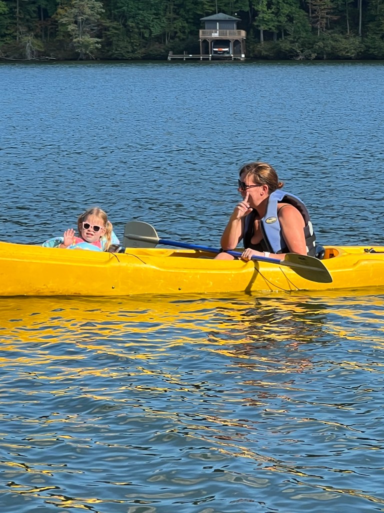 The day was filled with swimming, visiting the swing sets, crafts, picture frame creations, Tattoos, decorations, kayaking, paddle boarding, walks, and resting when we could. In the evening, we had two good rounds of Bingo with prizes and story time with Parish on the guitar, singing/reading Frog Went a Courtin’. A big hit for the weekend was playing with walkie-talkies and paper airplanes! Grandma Louise kept saying, Spencer Jr is having so much fun. This place brought out his adventurous side! He is just like his Ace, with a lively spirit, adventure, and willingness to try anything!