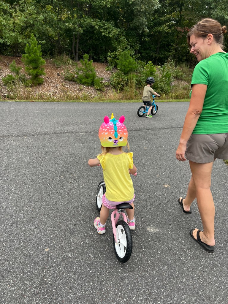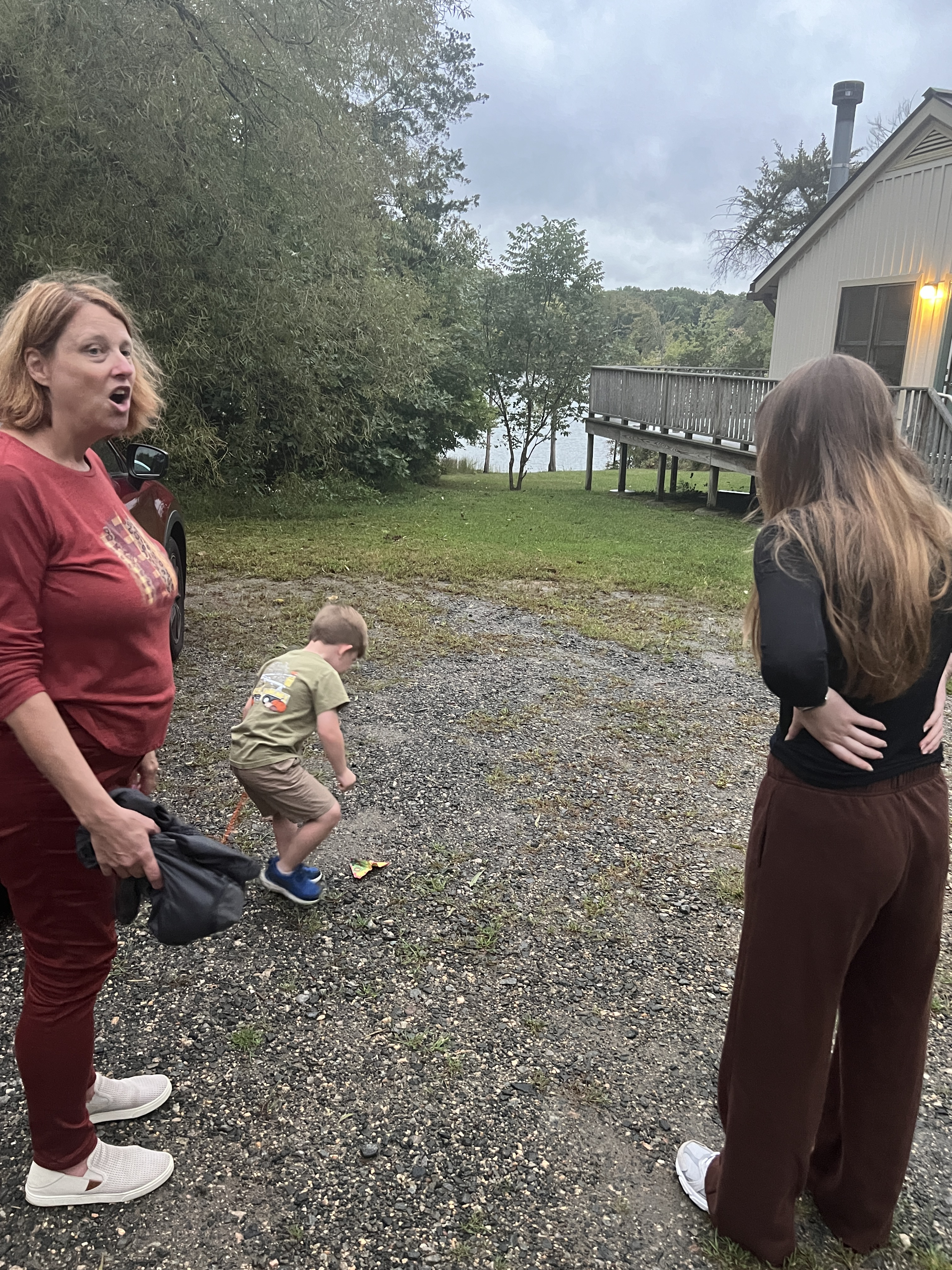 Folks started arriving around 3:15. We went on walks, had pizza, and baked cookies for dinner. The children brought their scooters and bikes. Our loop was paved, and it was a great circle to walk and ride bikes.