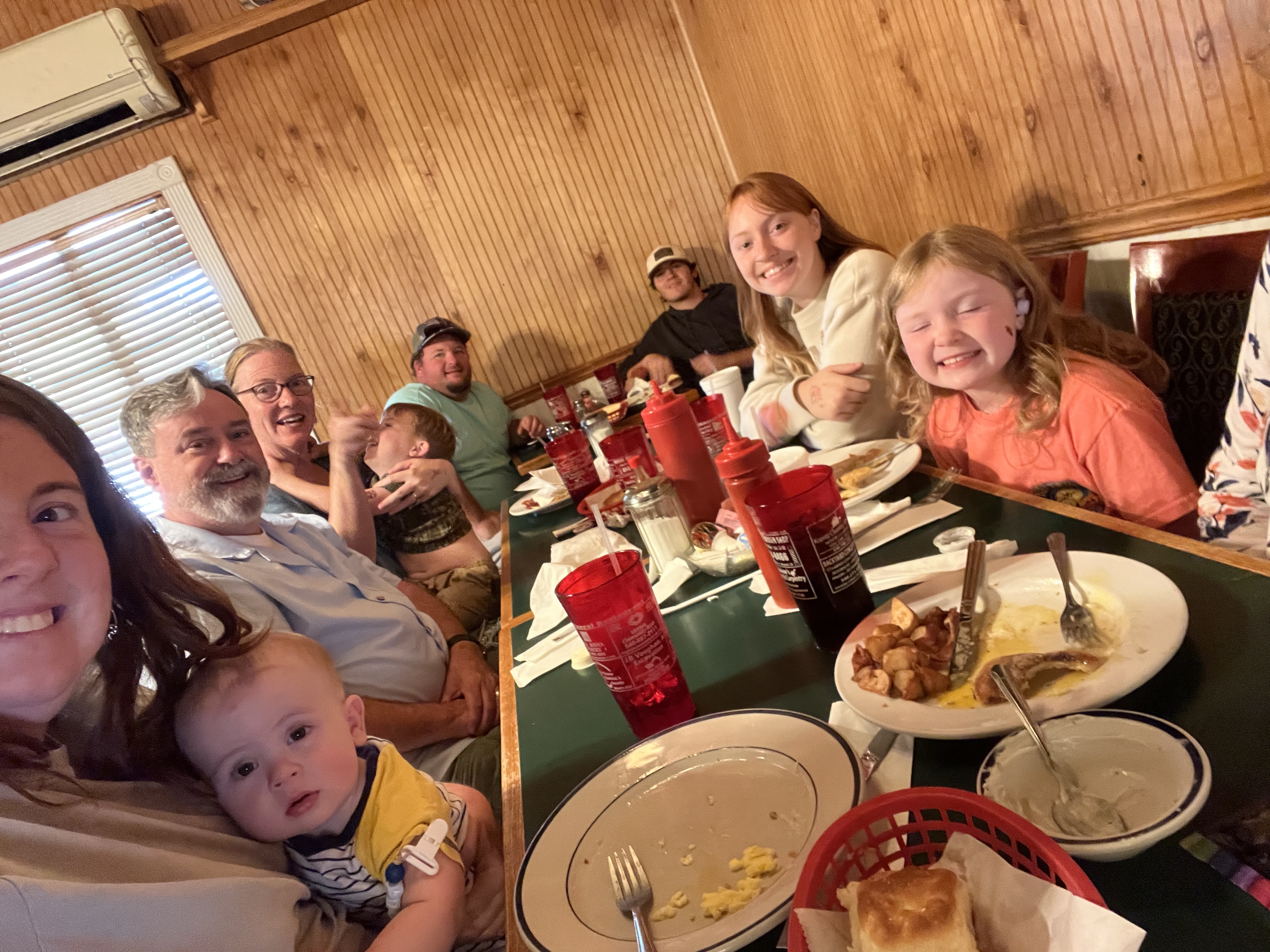 Who was able to attend: Carrie, Kyle, Rowan and Sorelle, Parish, Anna, Valentina, Drake, Louise (Anna’s mom), Victoria, Spencer, Huxley, Spencer Jr., and Adelaide, Linda, John, Kirstin and Kayla, Little Lori, Grandma Lorrie, Jax, Bella, and Levin. (Vivian and her family and Addison had to work.)
