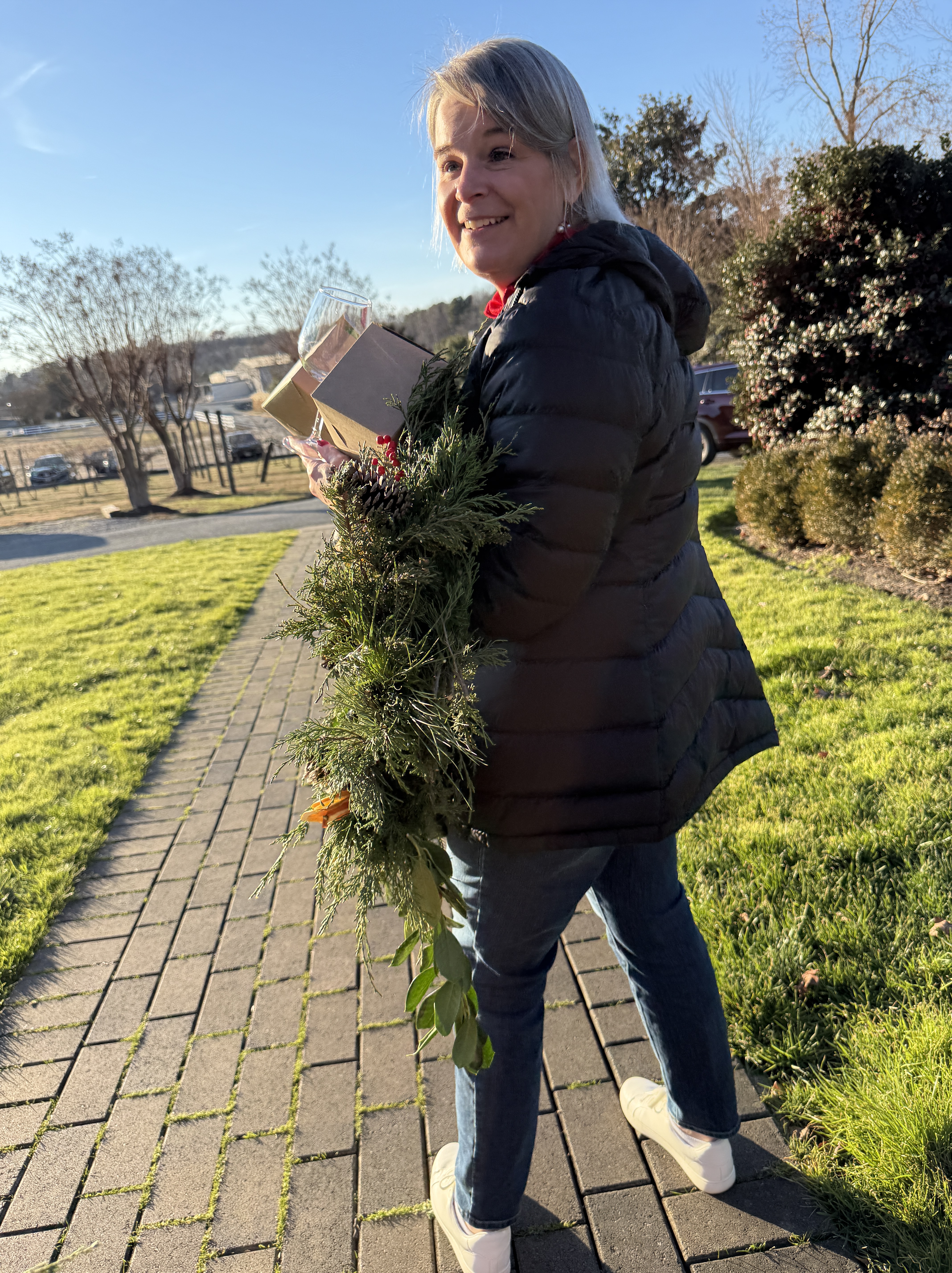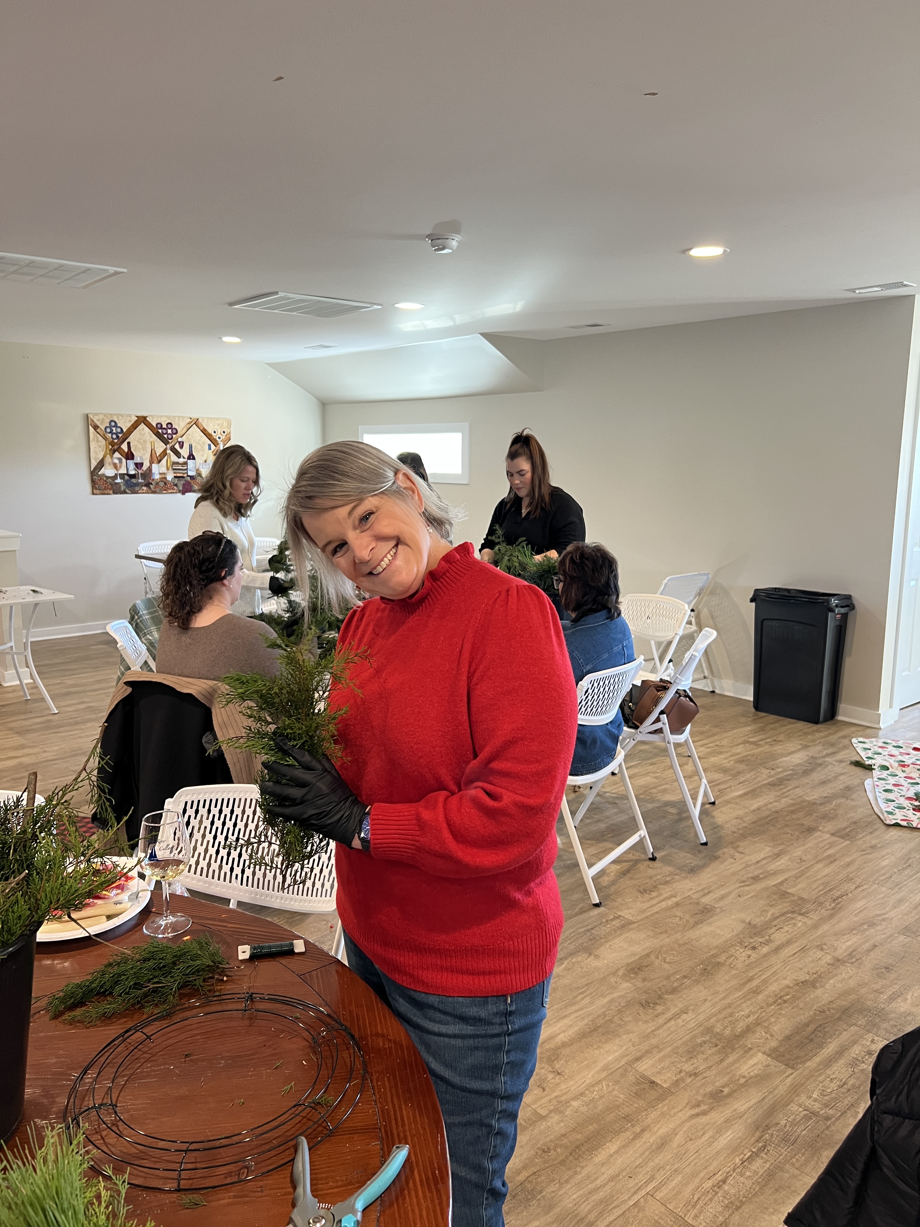 Making wreaths with friends–trying something new. Dinner, lunch, and new Christmas spots with adored friendships.
