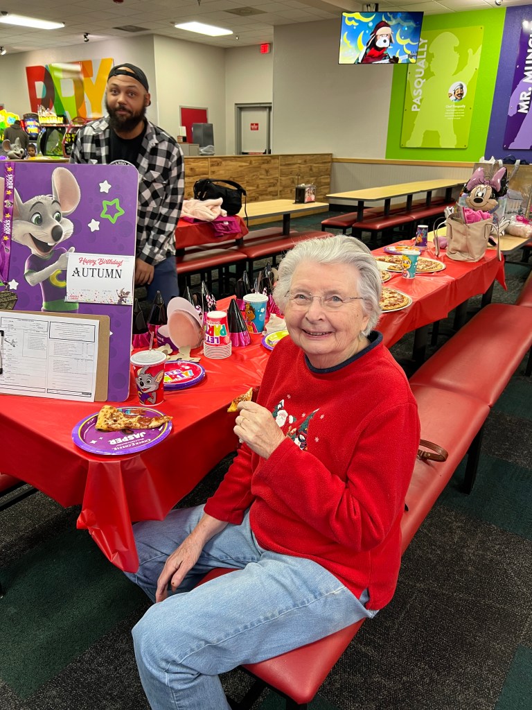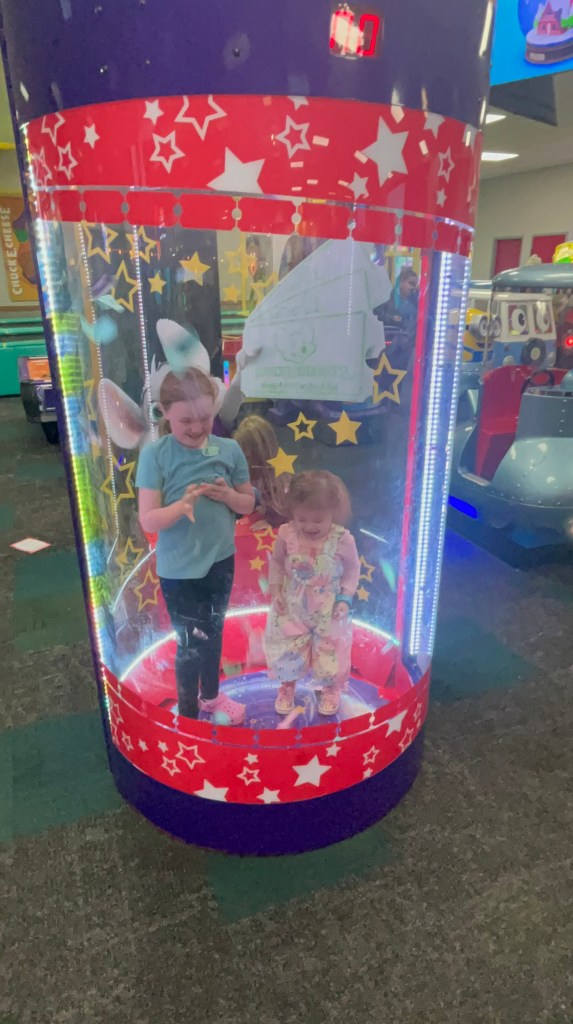 Autumn’s two-year-old birthday party at Chuck-E-Cheese (and Spencer, Jr. was in heaven!)