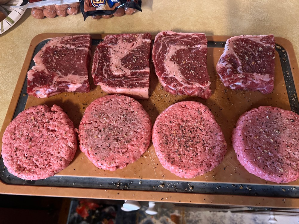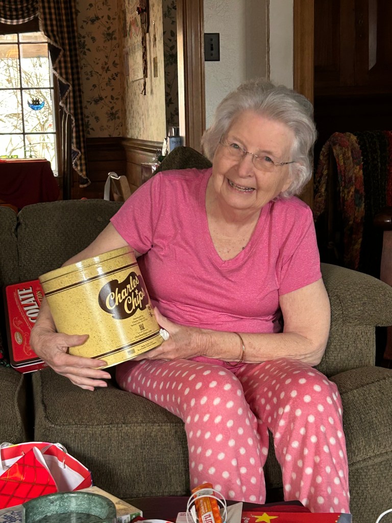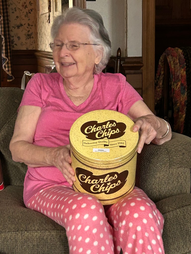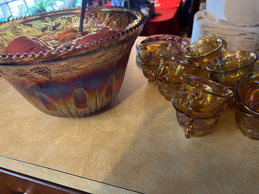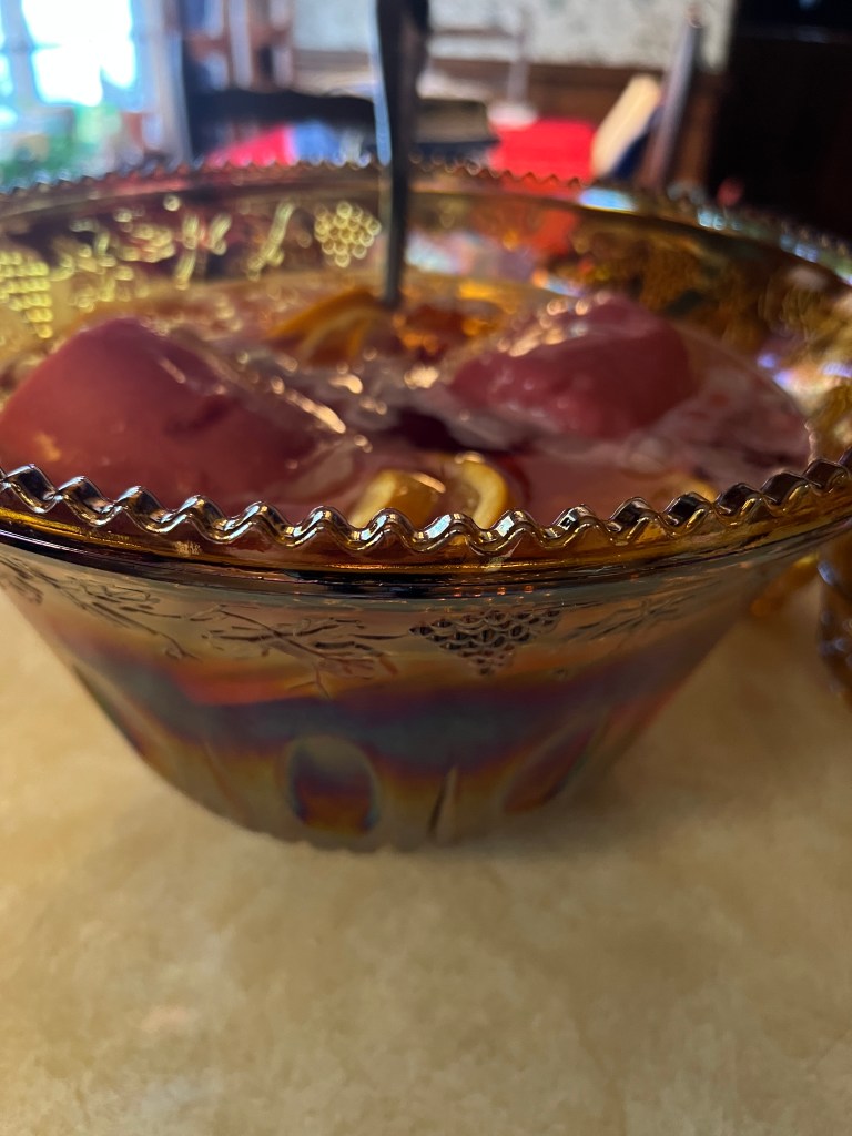Parish and I loved changing breakfast plans to lunch so all the families could eat and be present at 1:00! We cooked all the meat in the fridge and grilled hotdogs, hamburgers, and two steaks! I made yummy mashed potatoes, which were a big hit because the secret is adding sour cream. I also cleaned a pantry and found my Aunt Polly’s punch bowl! I cleaned it up and made a punch! We love you, Aunt Polly!