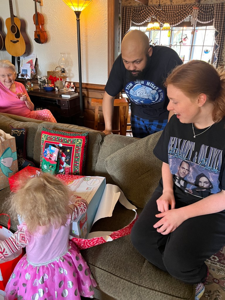 What fun it was to spend Christmas Eve with family at the Godbeys’ home. We sang Christmas carols together, and I loved watching Autumn sing “Jingle Bells!” Thank you, Linda, for asking Parish to bring his guitar! There were crafts! There was yummy food!