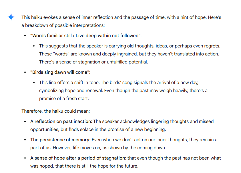 After I wrote my haiku this morning, I asked an AI platform to interpret it. What would a computer say about the poem that I wrote?