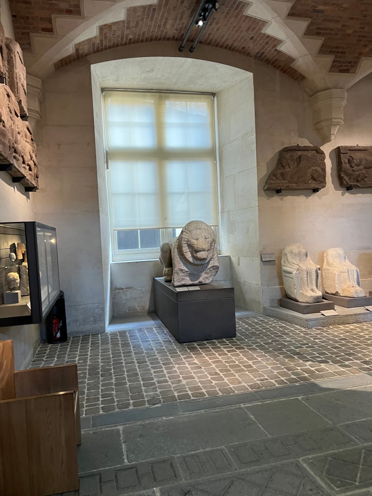 The museum has a variety of lovely cafes where you can enjoy a cup of coffee, sandwiches, or pastries. We enjoyed a cafe inside the museum just before we went down the stairs to exit into the gardens. I loved the window looking out to this building with the French flag waving.