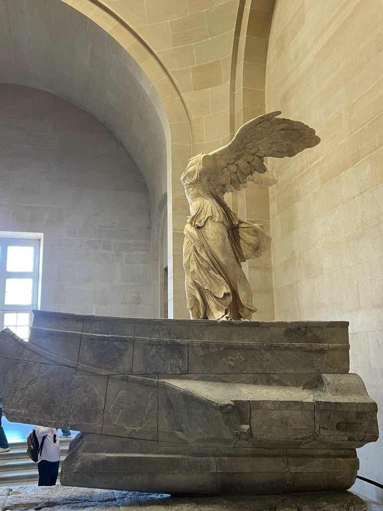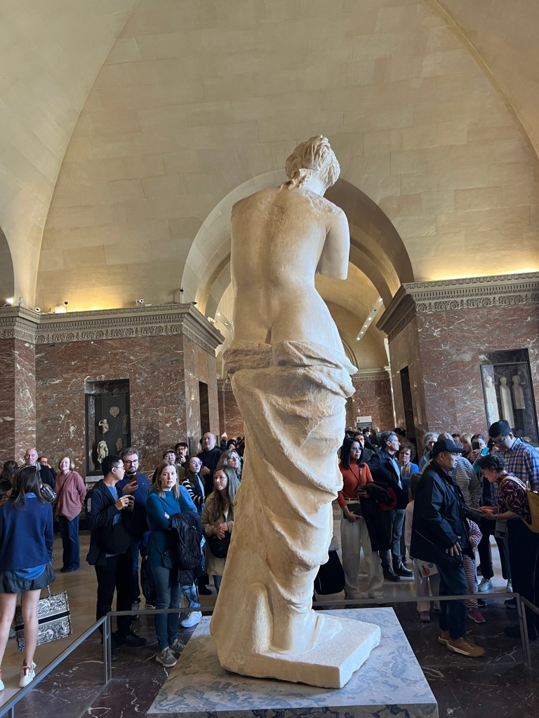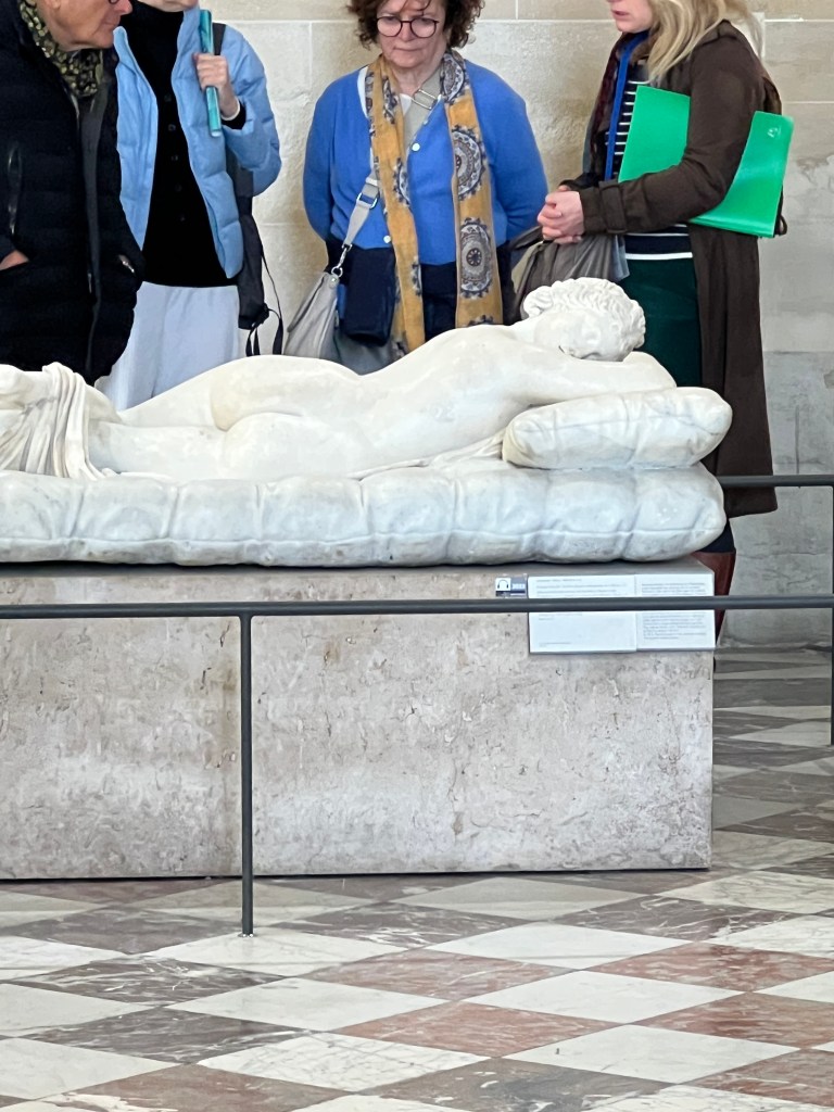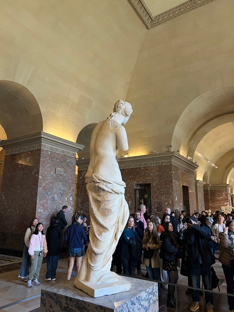 We are excited to use our museum pass for the first time and head to the Louvre. Buy the pass! It is worth it if you stay for a while and visit multiple museums. Not only do you get to skip some of the lines, but you can also use the pass to hop into a museum to rest and use the restroom. The Louvre is one of the largest museums in Paris. We agreed to not invest in many group tours but to use Rick Steve’s audio downloads. This saved money, time, and head space. I adore a tour guide, but there is such a thing as museum overload. If you want a group tour or personal tour, try some of these companies.