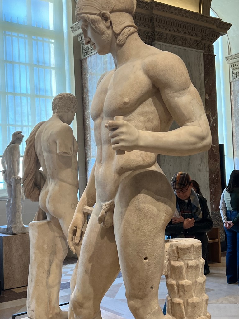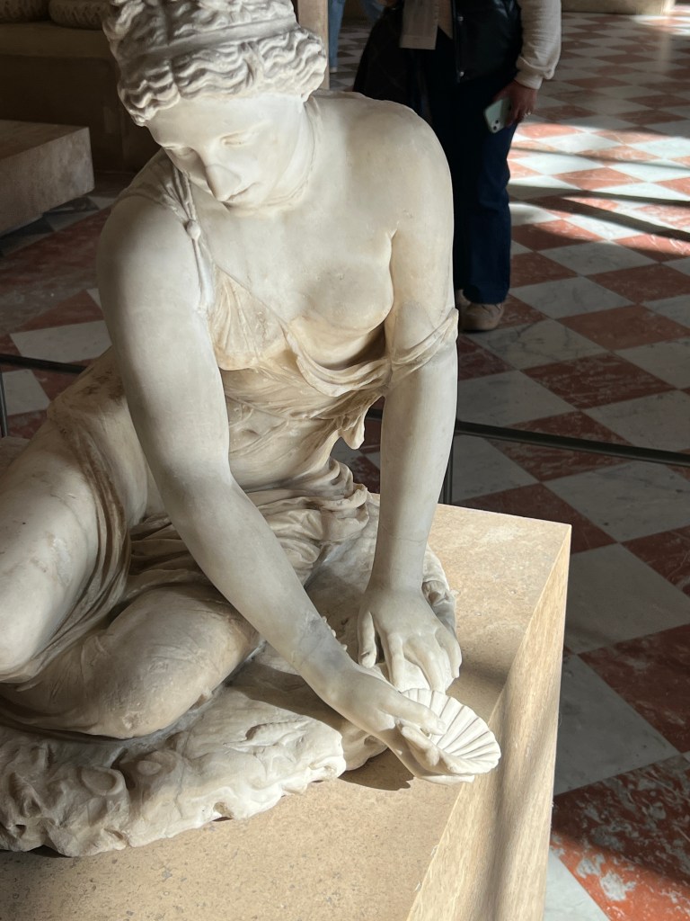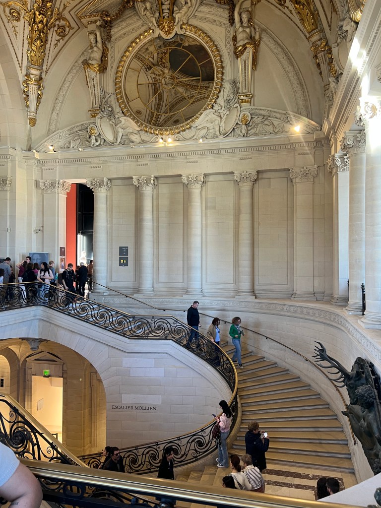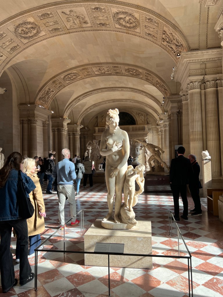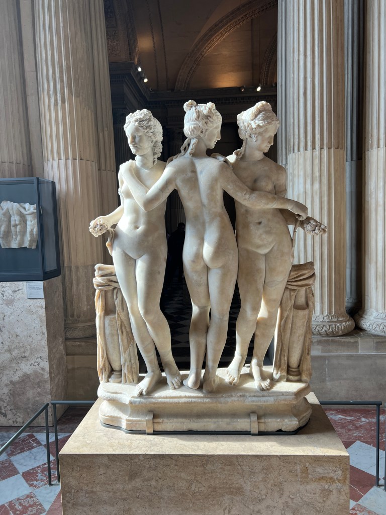We are excited to use our museum pass for the first time and head to the Louvre. Buy the pass! It is worth it if you stay for a while and visit multiple museums. Not only do you get to skip some of the lines, but you can also use the pass to hop into a museum to rest and use the restroom. The Louvre is one of the largest museums in Paris. We agreed to not invest in many group tours but to use Rick Steve’s audio downloads. This saved money, time, and head space. I adore a tour guide, but there is such a thing as museum overload. If you want a group tour or personal tour, try some of these companies.
