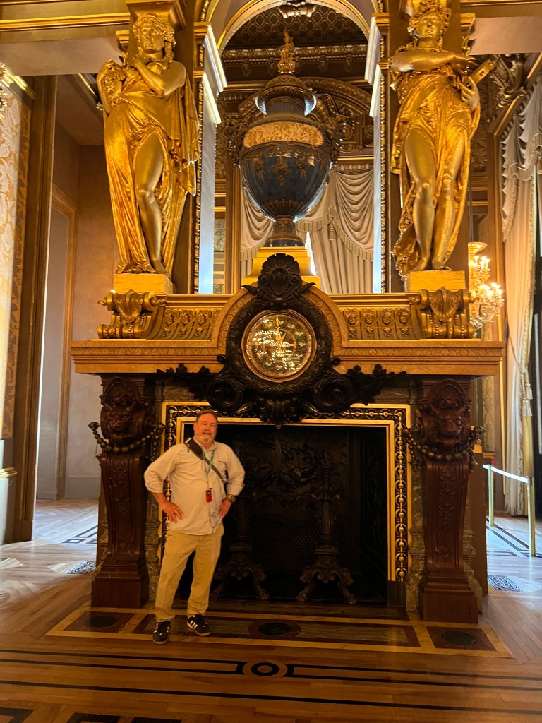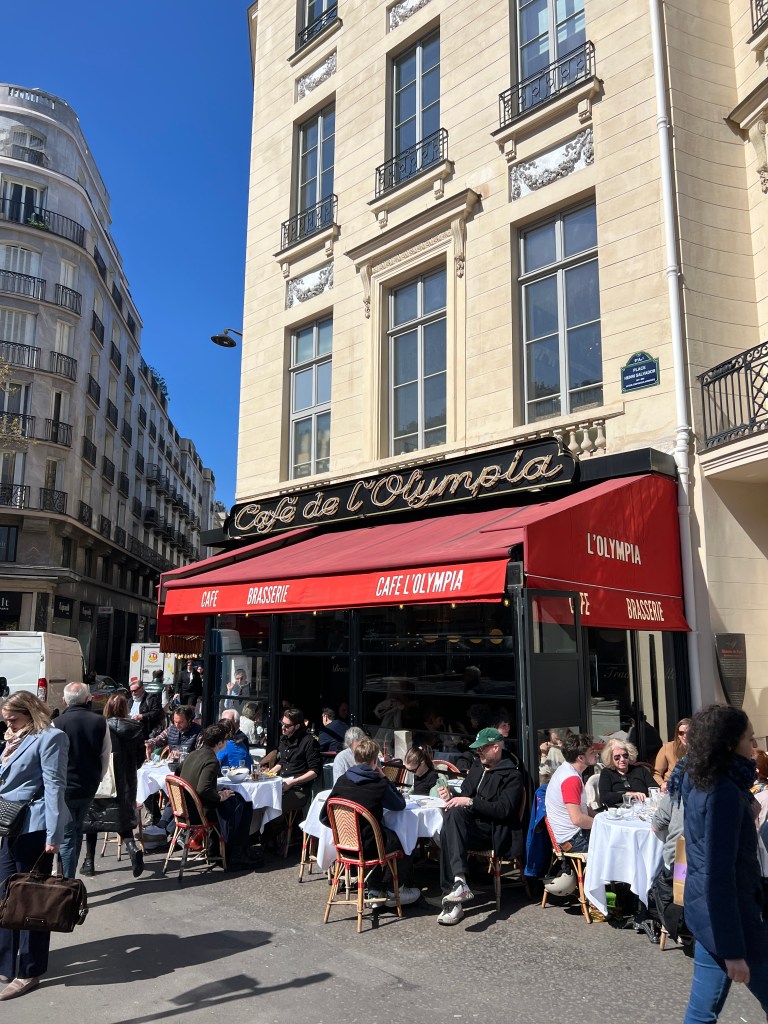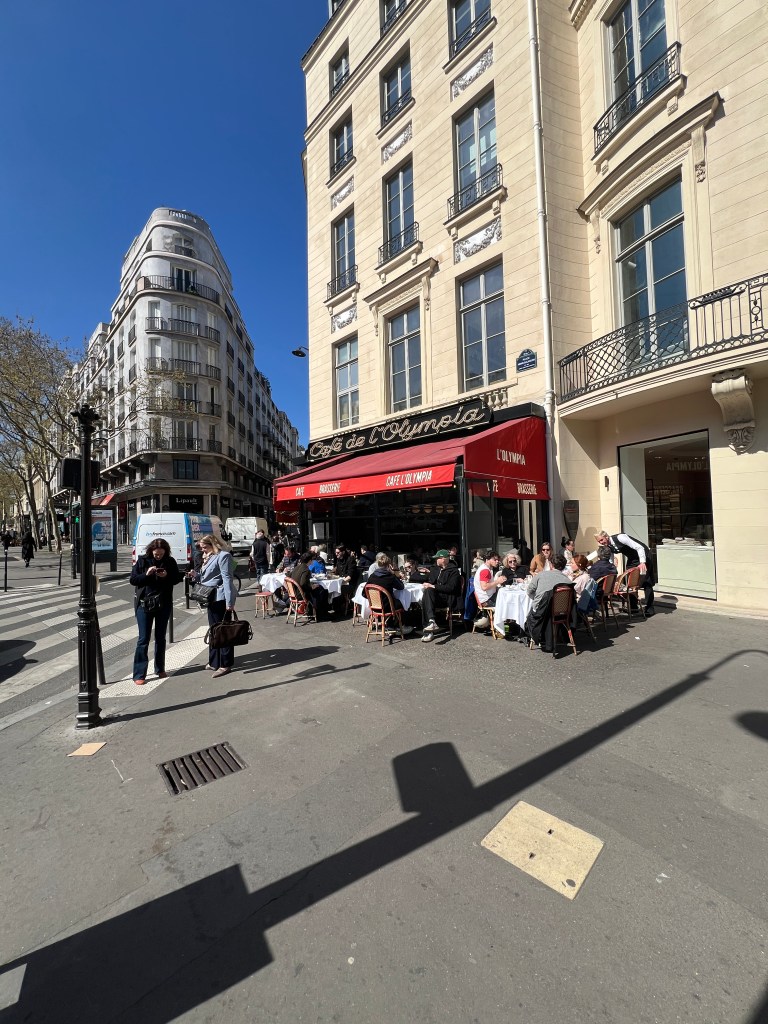 I talked a little yesterday about Palais Garnier. We purchased the afternoon tour tickets and visited the Louvre in the morning. It was easy to walk from the Louvre to the opera house. We left the Louvre by way of the gardens. Along the way, we stopped to have lunch at the Cafe de L’Olympia . We sat outside and enjoyed watching the people pass by. The service was over-the-top attentive and engaging, and the food was perfection. I highly recommend this restaurant. It was interesting to observe that most restaurant owners and staff wore vest jackets with the restaurant’s name on them.