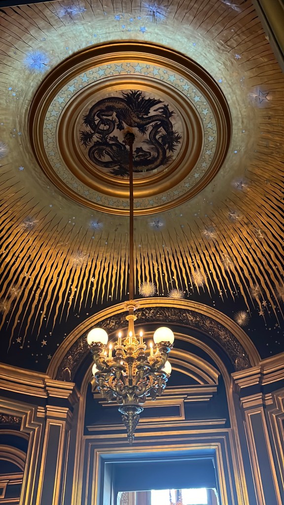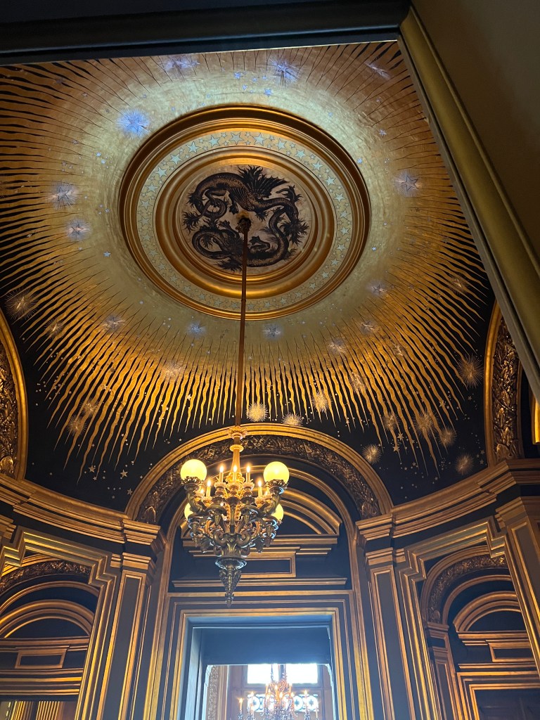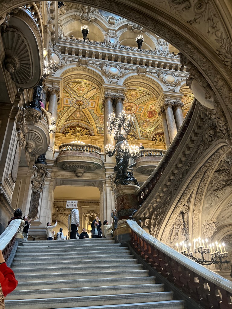 The experience of moving through the Palais Garnier mirrors a crescendo in music, growing in grandeur and brilliance as you ascend. The lower levels are majestic yet subdued, with intricate details and dim lighting setting a tone of quiet anticipation. As you climb higher, the spaces become increasingly opulent—lavish sculptures, gilded ornaments, and vibrant marble greet you. The Grand Staircase acts as a visual and spatial climax, transitioning into the dazzling Grand Foyer and the glittering auditorium. The lighting becomes brighter and more resplendent, culminating in the breathtaking radiance of the chandelier and Marc Chagall’s vivid ceiling in the heart of the opera house. It’s an architectural symphony, where every step upward amplifies the splendor and drama.