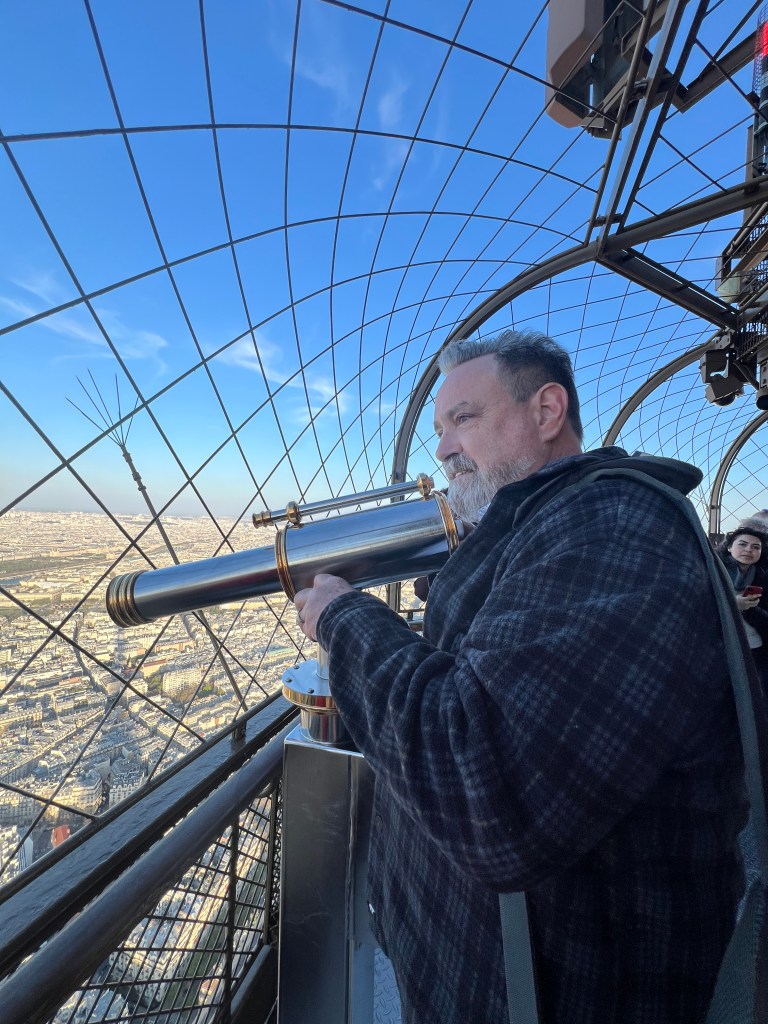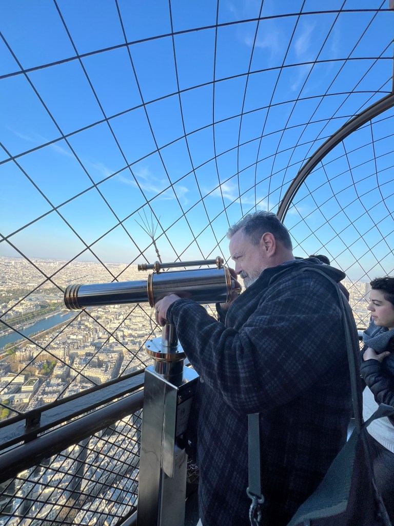 Check sunset times for Paris during the week you are going (Google Search), and select your ticket time accordingly. We visited the Eiffel Tower from 8:00 to 10:30! Take your time, try to find all the buildings you’ve visited or hope to visit. Take some Euros (coins) for the telescope. What you can see as you do a 360 around the tower is amazing. The elevator that takes you up to the Summit allows you to see the inner workings of the tower, too. Enjoy and see the details. Once you are at the Summit, you can walk another set of stairs to the tippy-top!