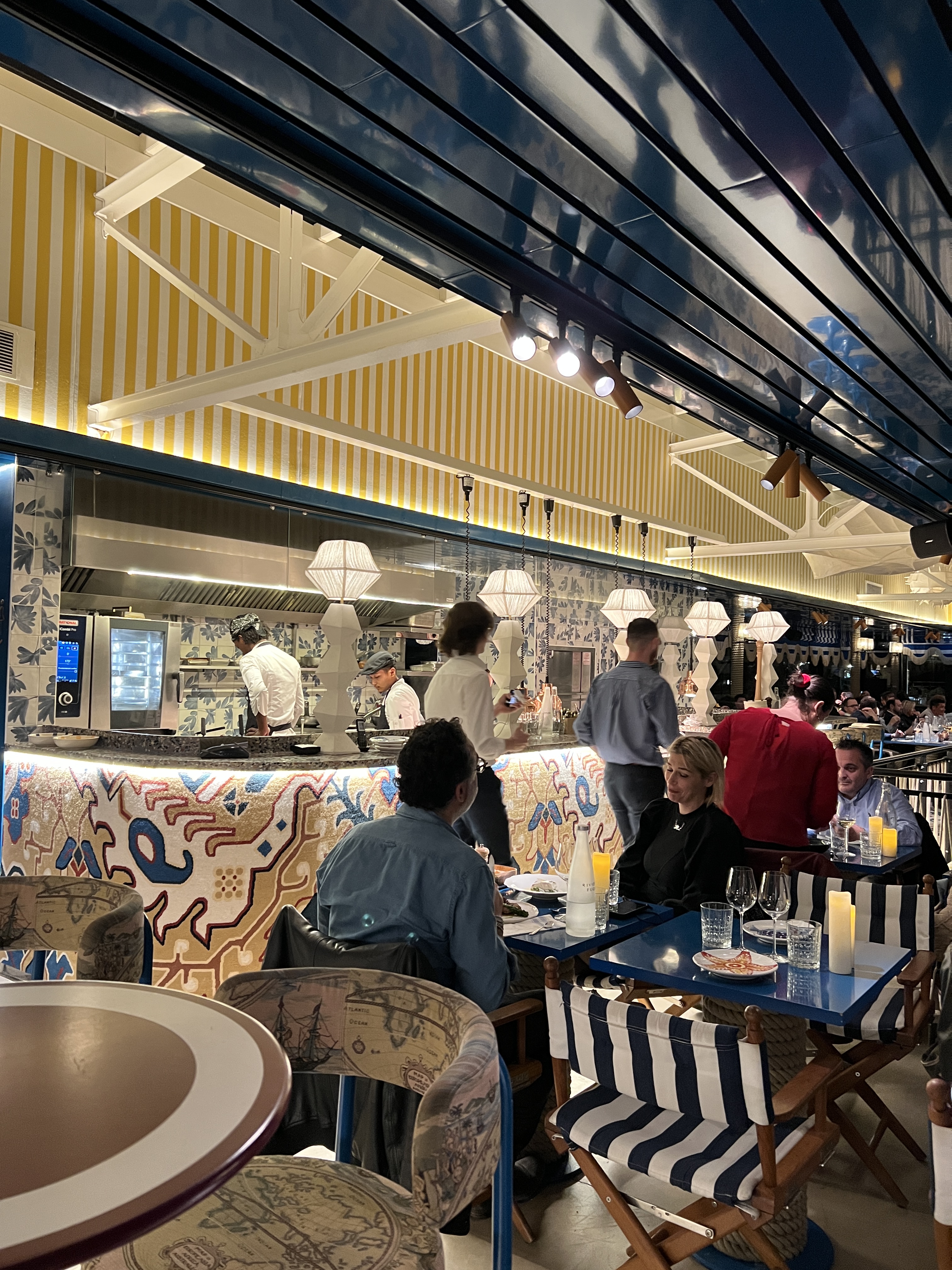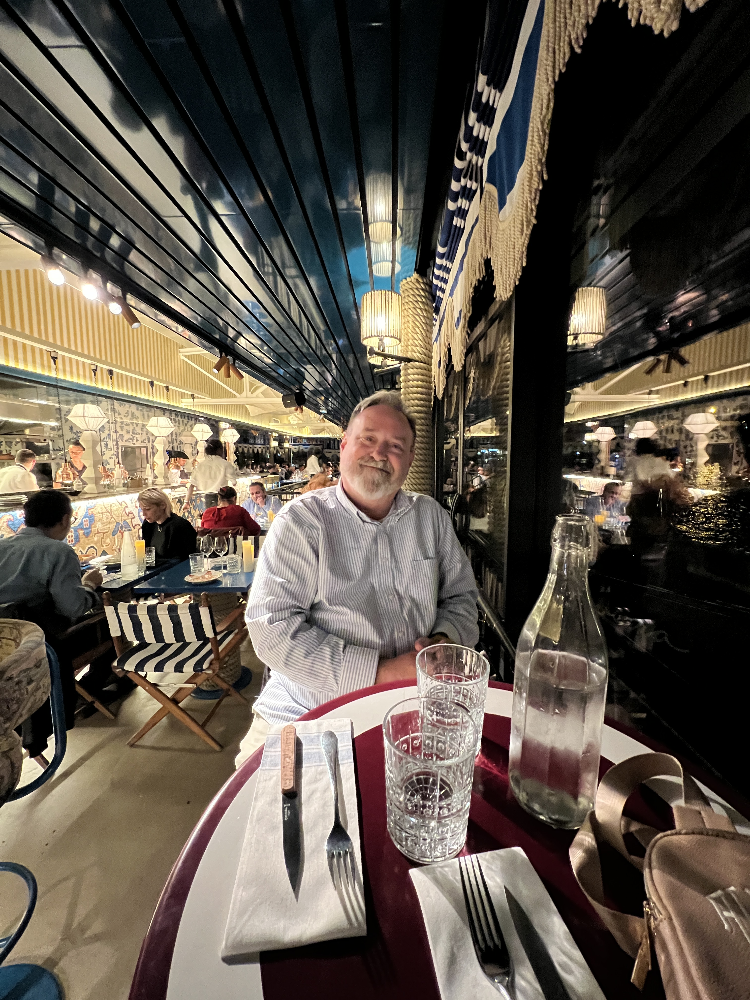 We started walking home from our experience, taking the Promenade Des Berges de la Seine, and found ourselves on the walkway right next to the water. It was getting late, and there were some runners on the path, but not many people, and it was rather dark. To our delight, we found a restaurant called Riviera Fuga housed in a boat near the Alexander III bridge!