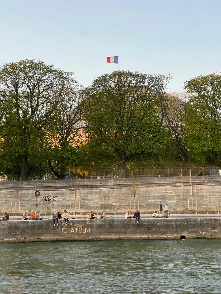 One of the most enchanting moments came as we passed an alcove nestled by the water, adorned with a majestic weeping willow tree. Its cascading branches seemed to sway in quiet reflection, offering a serene sanctuary amidst the vibrant city. It was a fleeting yet unforgettable scene, one that seemed to hold the very essence of Paris as young people waved and smiled at us.