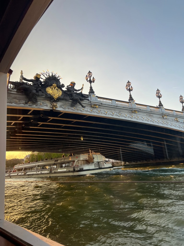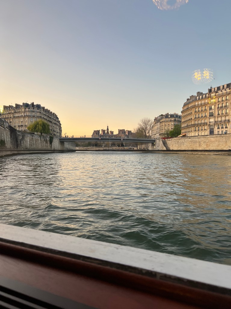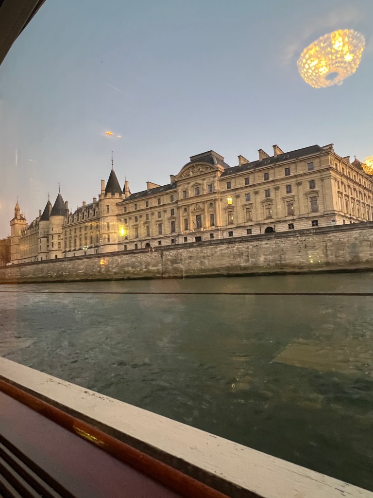 I did not expect a private, luxury cruise. Go with the mindset that you are with other people, experiencing the Seine and the sights from the waterway. Our boat was small, making it more intimate and less cruise ship style. We also paid a little extra for the window seat, which was worth every penny. We chose the Paris En Scene Dinner Cruise. Their service was excellent. The food was okay. If you don’t want the dinner cruise options, Paris has many boat ride options, such as just buying a ticket and waiting in line to ride a boat with many people around the Seine. We wanted something more intimate and relaxing. If you Google search “boat rides on the Seine in Paris”, you will have many options for booking tours, private tours, and websites that offer suggestions.