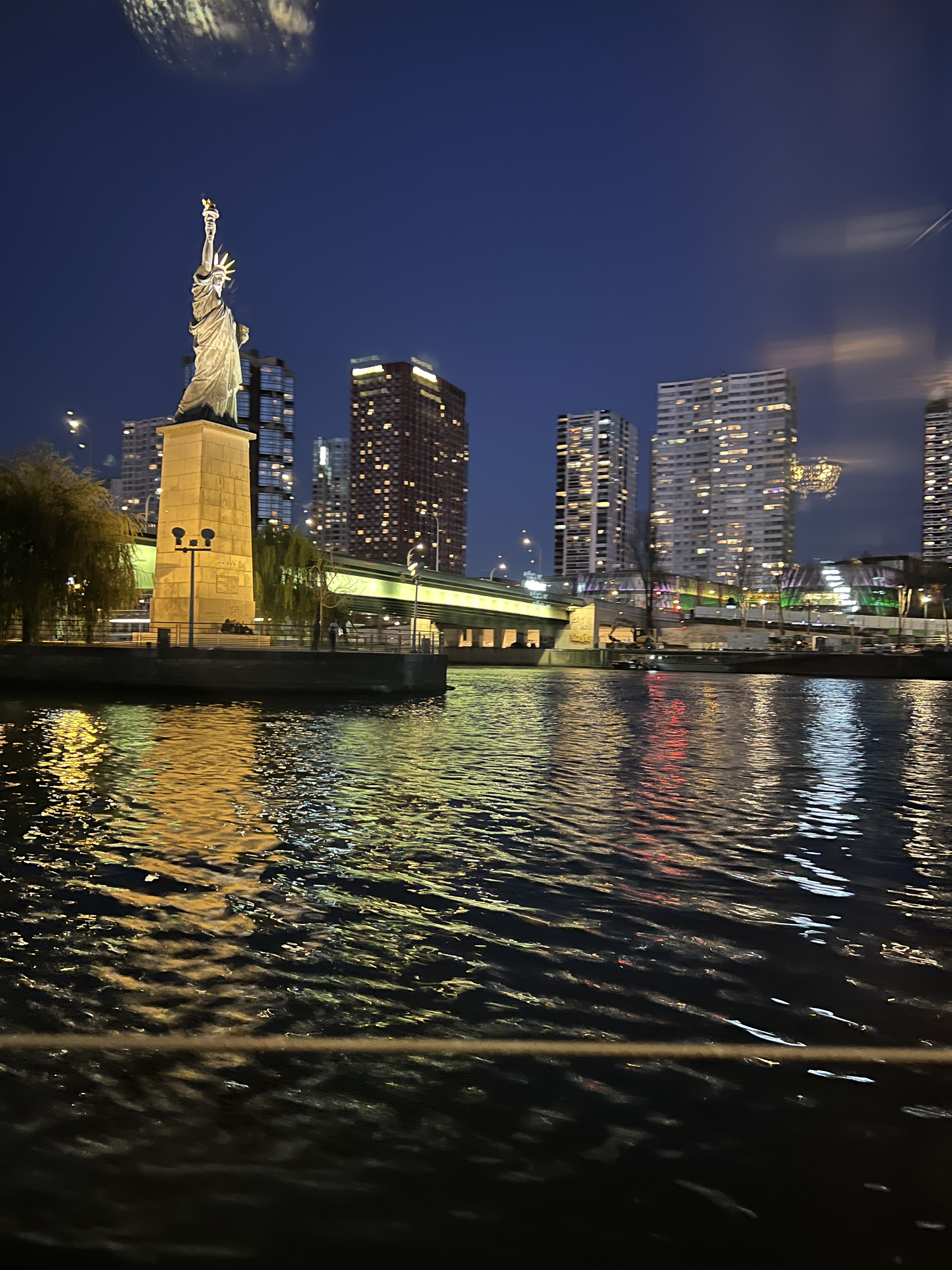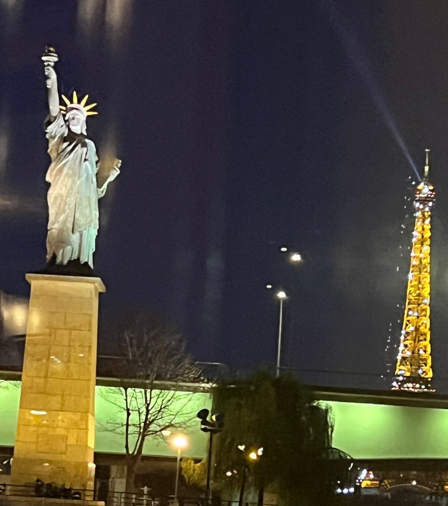 As night fell, the Eiffel Tower came alive, its golden lights shimmering like a beacon of dreams. Its brilliance was only rivaled by the striking presence of the Statue of Liberty, standing nearby as a nod to the enduring friendship between two nations. The juxtaposition of these iconic symbols, illuminated against the darkened sky, was awe-inspiring—a sight that filled me with a profound sense of wonder.