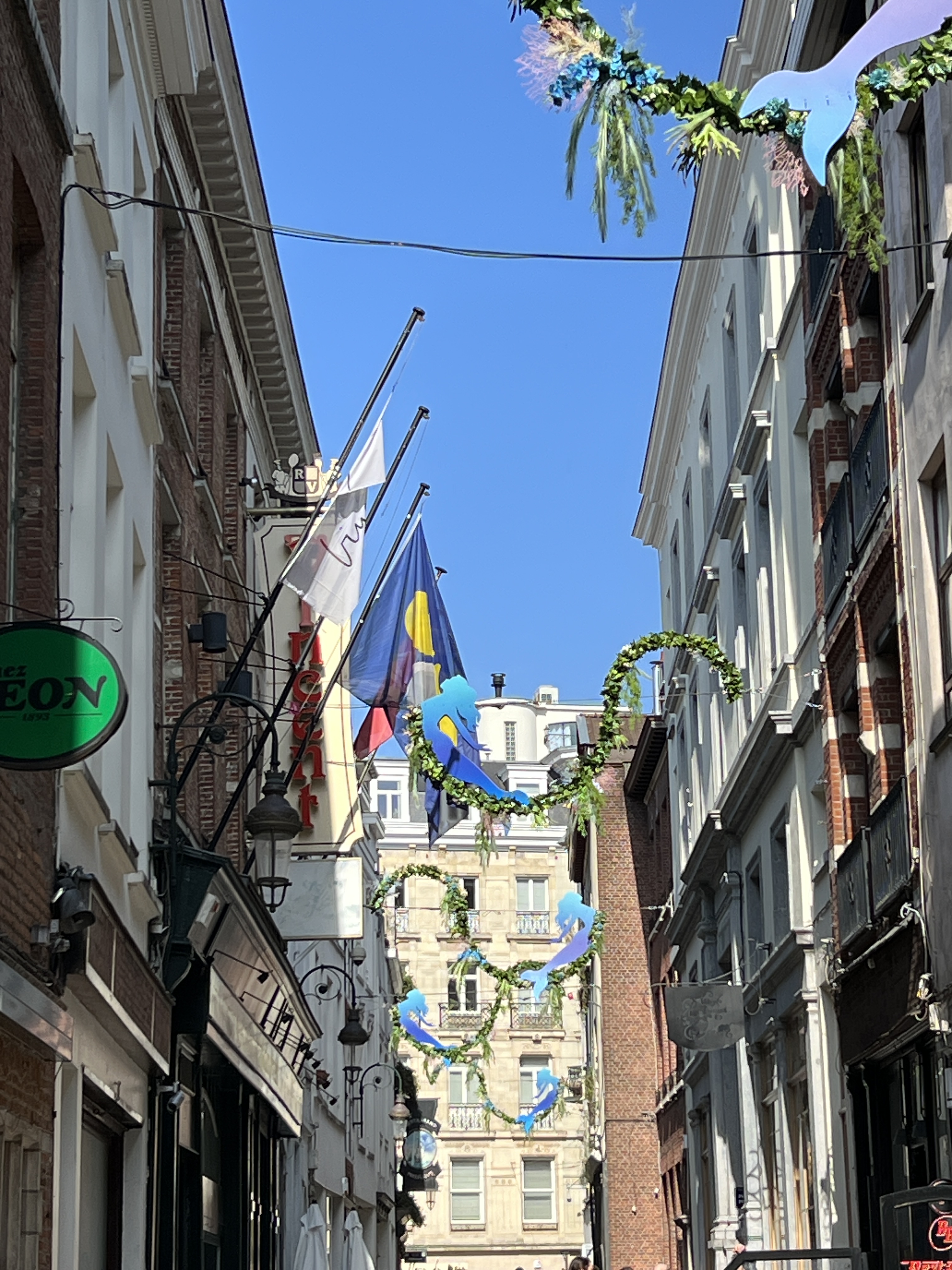 One of my favorite ways Brussels celebrates its city is by hanging decorations from the buildings.