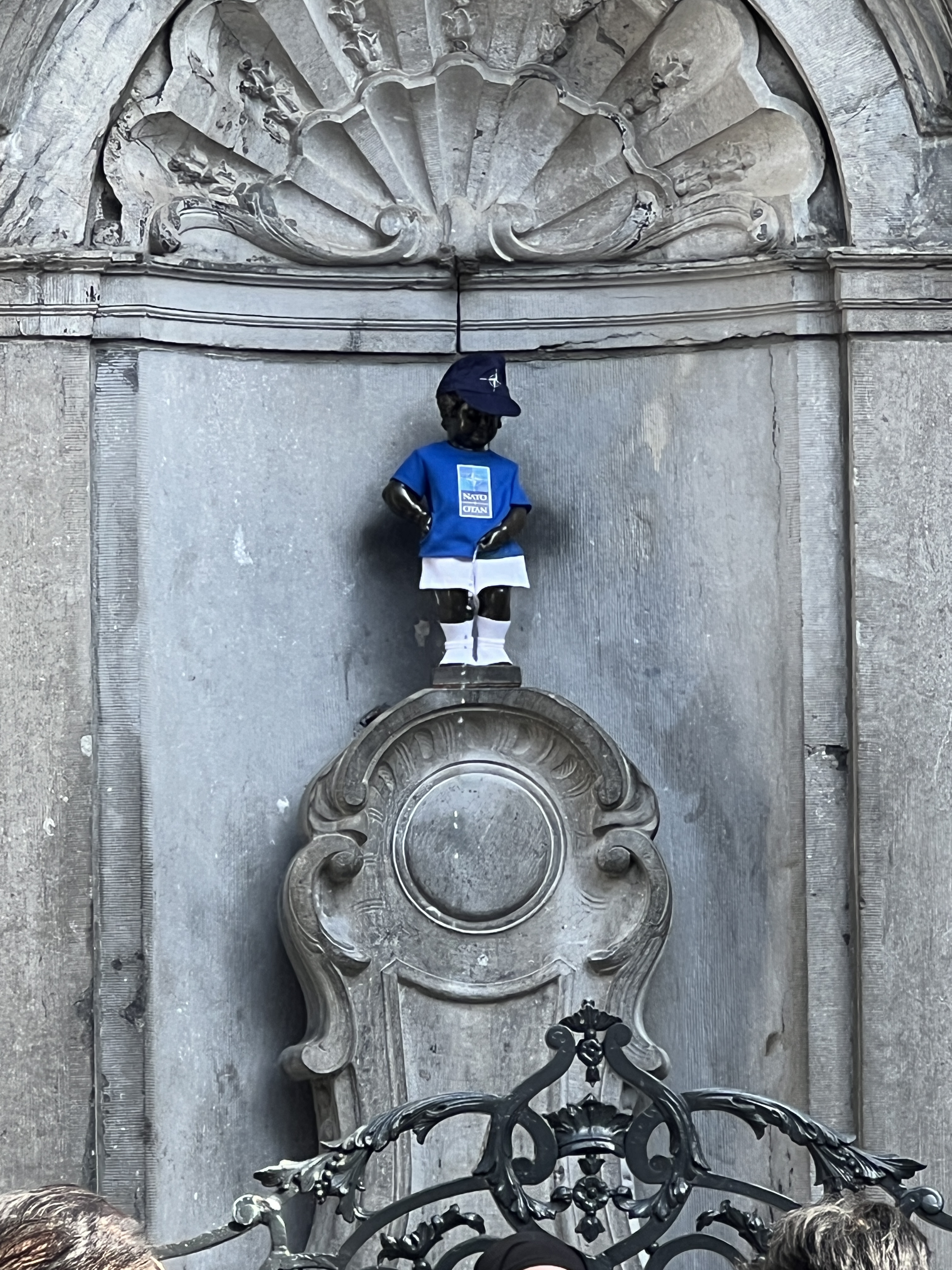 From there, we walked around the town to discover thrift stores and famous spots like the little boy statue they dress up. The statue is called Manneken Pis.