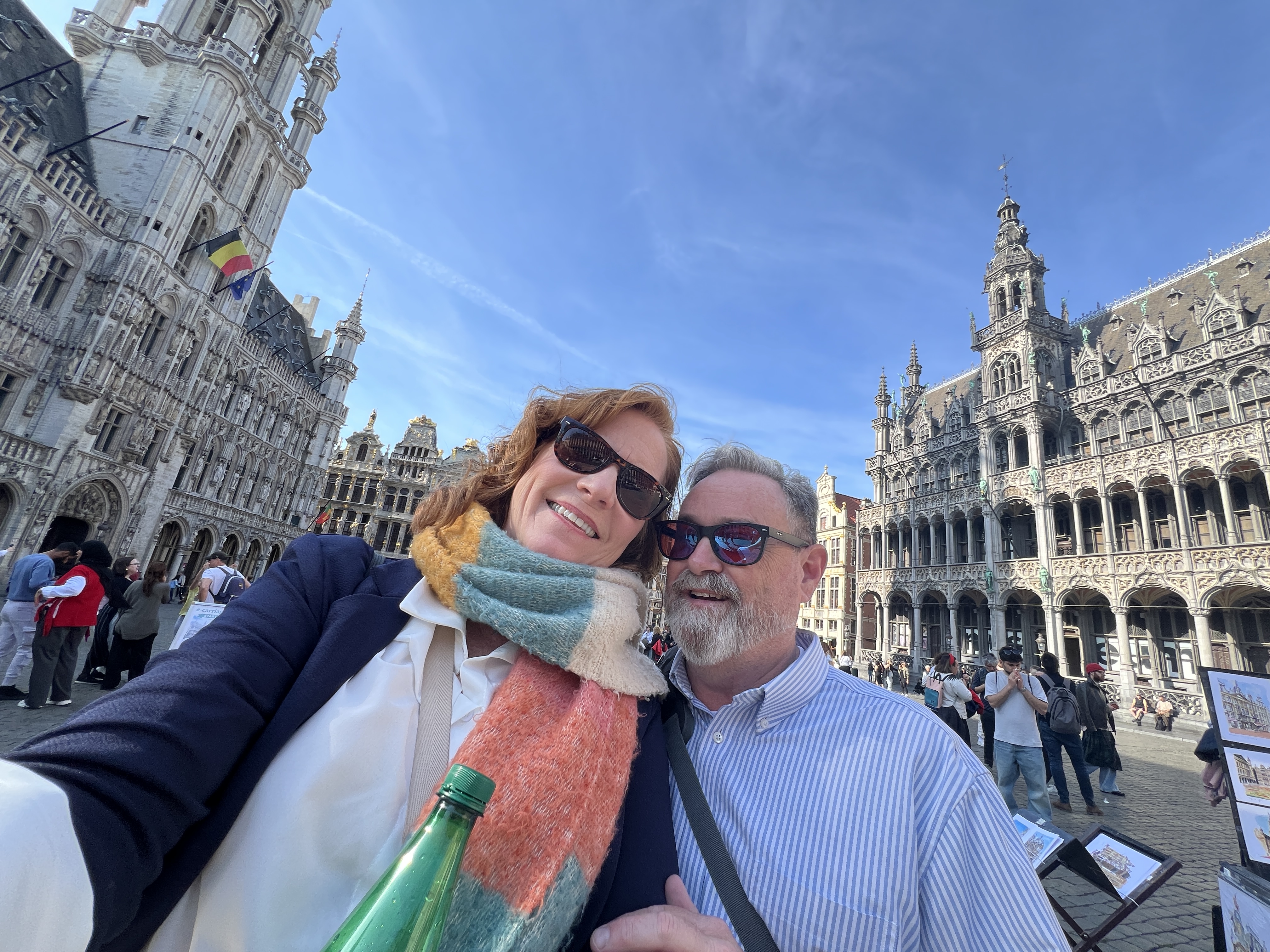 Today is Wild Card Day! We took a train from Florence to Bologna to explore something off the scheduled path when we were in Italy. Today, we are heading out of France and traveling to Brussels, Belgium. I mentioned this earlier, but the train station had an international section, which confused me because I was still tired from biking through Normandy the previous day. I forgot I was in France and thought I was just going down the street! Anyway, we found our train and set off for Brussels. On the way, I listened to an excellent video by Rick Steves.