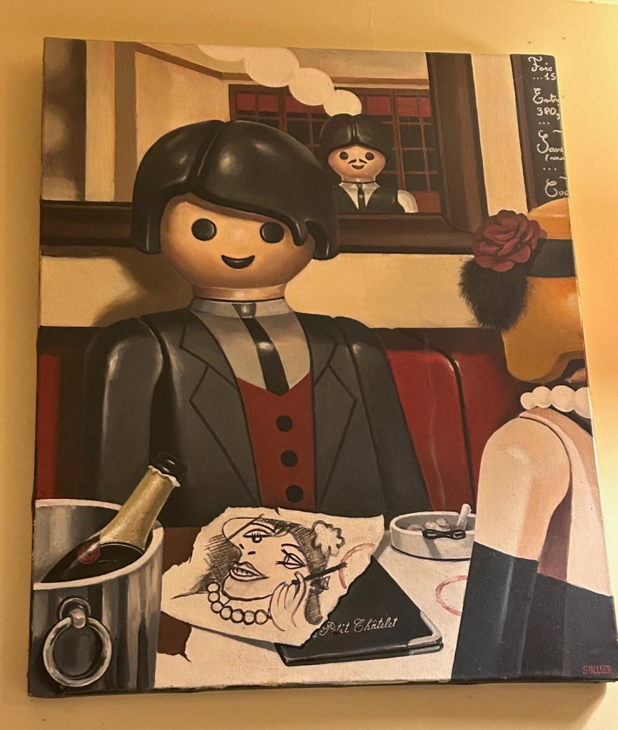 With engaging art on the wall and a dessert menu featuring crème brûlée, we were in heaven! And, yes, we ordered two crème brûlées—no sharing!