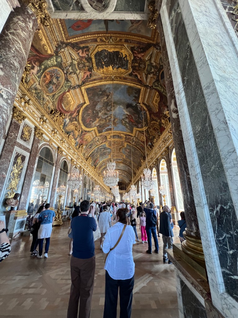 Versailles. That word alone conjures up royal opulence above what the mind can comprehend! We went to Paris during a “shoulder” month–the first of April, so the crowds were minimal. I’ve heard that summer can be pretty busy, so if you find yourself there in June or July, embrace the crowds, buy tickets ahead of time, and indulge in the extras- the garden and the row boats, along with lunch or dinner! Watch the sun set over the gardens! So inviting and magical. Although we did not visit the Queen’s Hamlet, my friend said it was a must-see–so put this on the list, too, if you have time. We decided to Uber to the palace and return the same way. This is about a 30 – 45 minute drive, depending on traffic. Want to engage in a tour? Take a bus? Metro? Ride bikes? Check out this post from a blogger who gives you lots of resources!