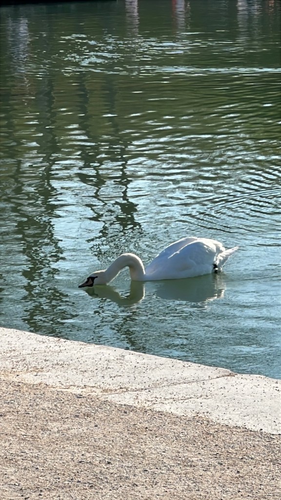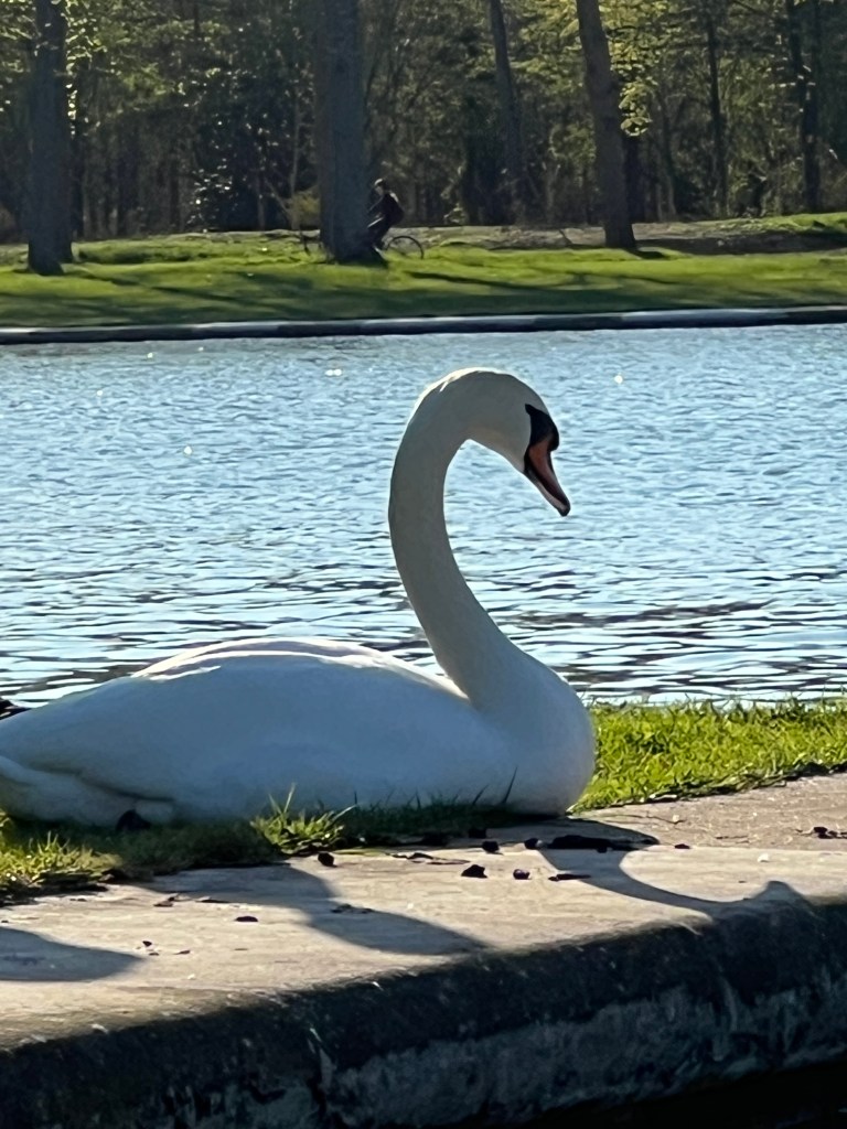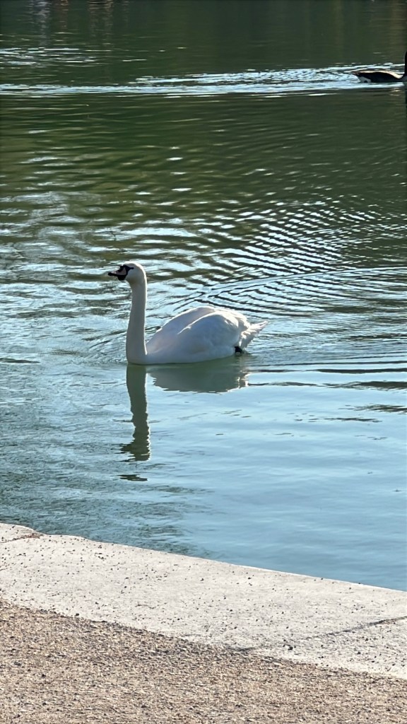 I will always treasure our enchanting rowboat experience. Gliding through the shimmering water, I felt like I had stepped into a serene oasis, where the gentle rustle of leaves and the soft lapping of waves invited tranquility. The sunlight danced upon the surface, creating a magical tapestry of reflections. The graceful presence of a white swan truly captivated us—a stunning creature, its feathers gleaming like freshly fallen snow against the backdrop of vibrant greens and blues. Watching it glide effortlessly across the water, I felt my heart swell with appreciation for the beauty of nature surrounding us.