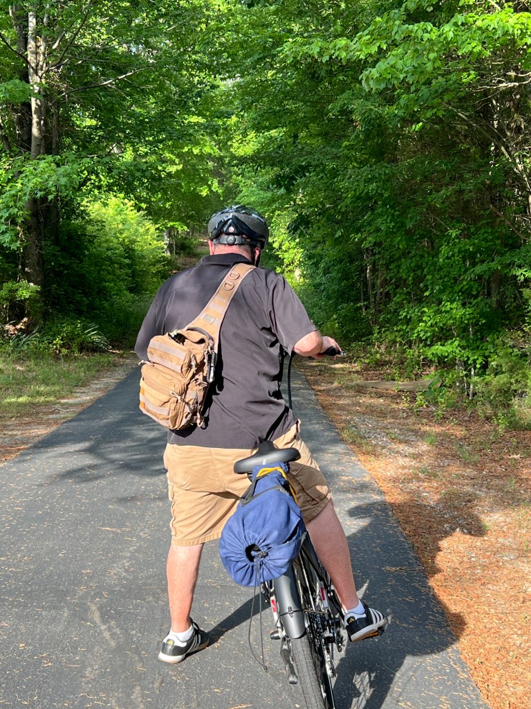 We parked our car at The Herring Creek Trailhead. I linked the Google search because they do not have an official website. GPS will take you to a person’s house, where many signs say “private drive” (bless them). When you make the turn on the last road for the directions the lot is before this house and easy to miss. It truly is just a lot with a few spaces. This is a great place to park if you do not have the time to ride the entire trail from Richmond to Indian Fields Tavern.