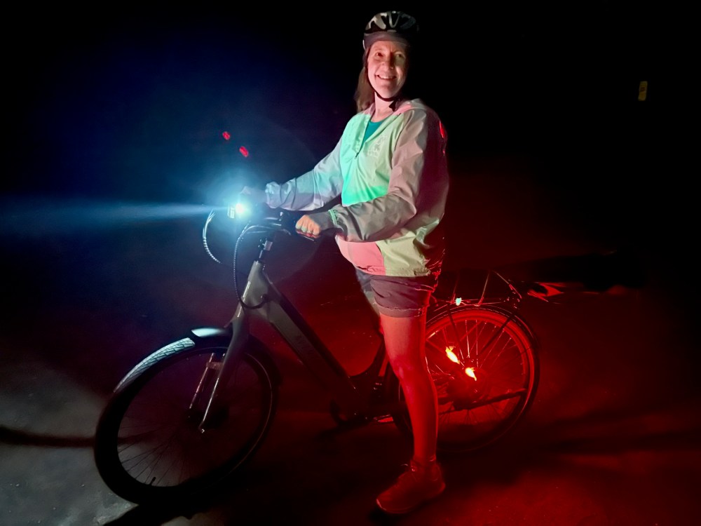 We stayed at the tavern until about 9:00 p.m., and it was our first time driving at night. Our bikes had headlights and brake lights, which kept us safe, and other than the bugs hitting you in the face, it was a mystical ride in the dark.